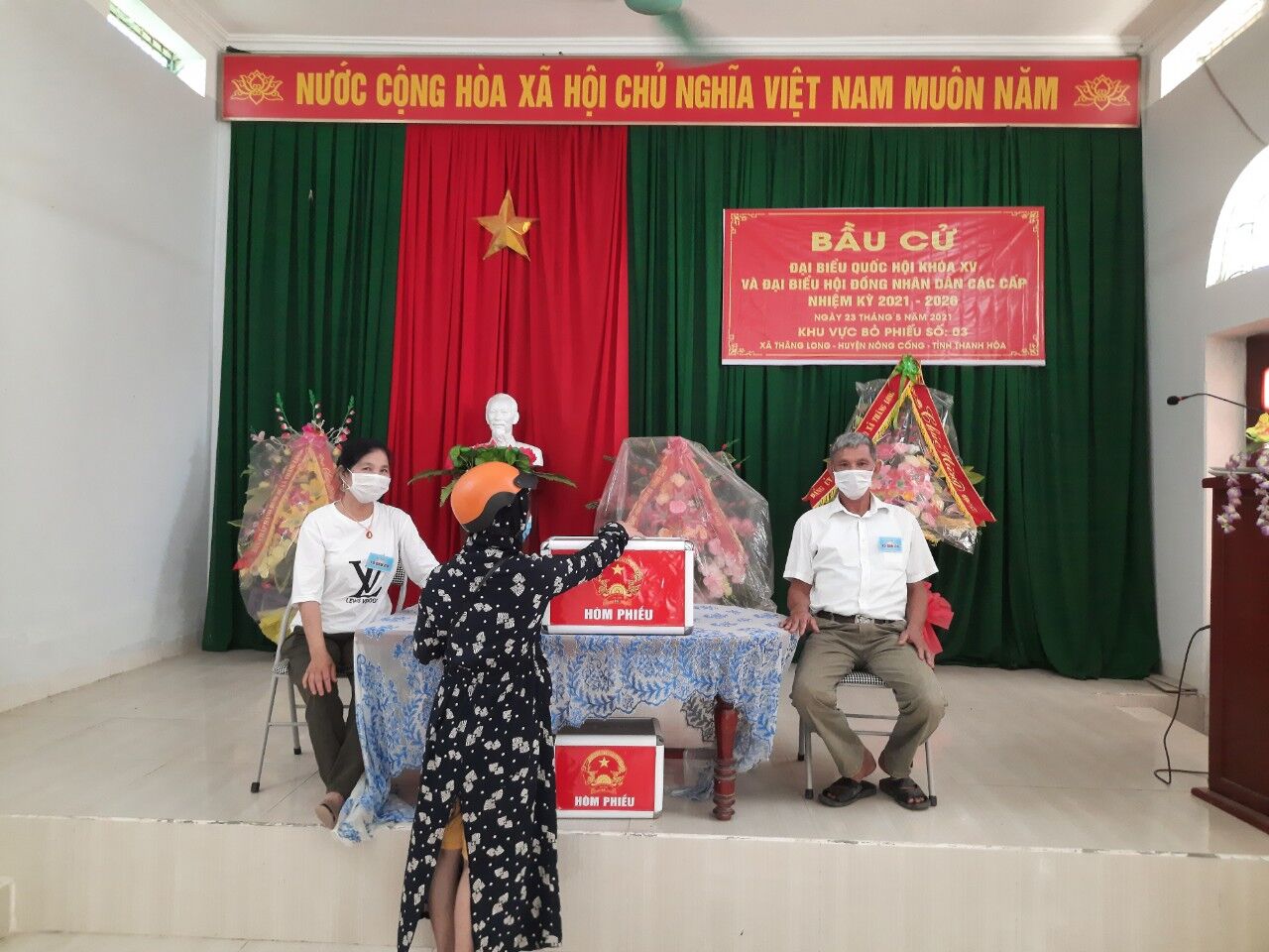 Cử tri thực hiện bỏ phiếu tại Khu vực bỏ phiếu bầu cử số 03, xã Thăng Long, huyện Nông Cống