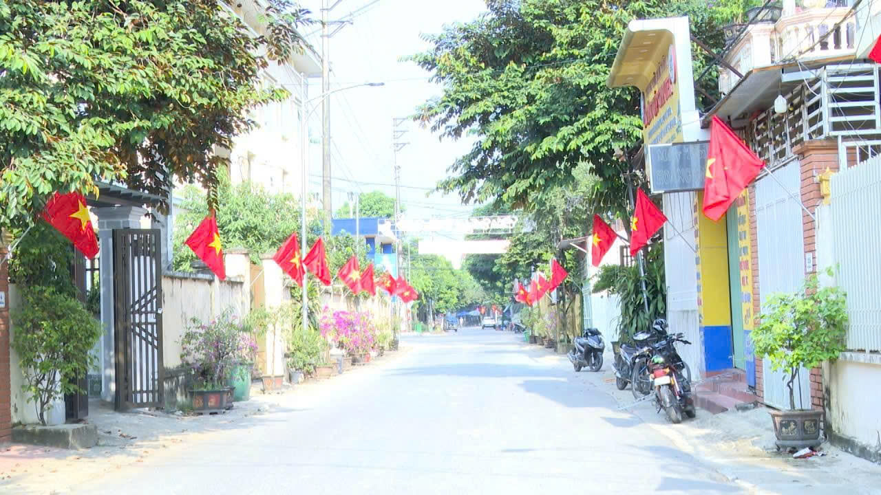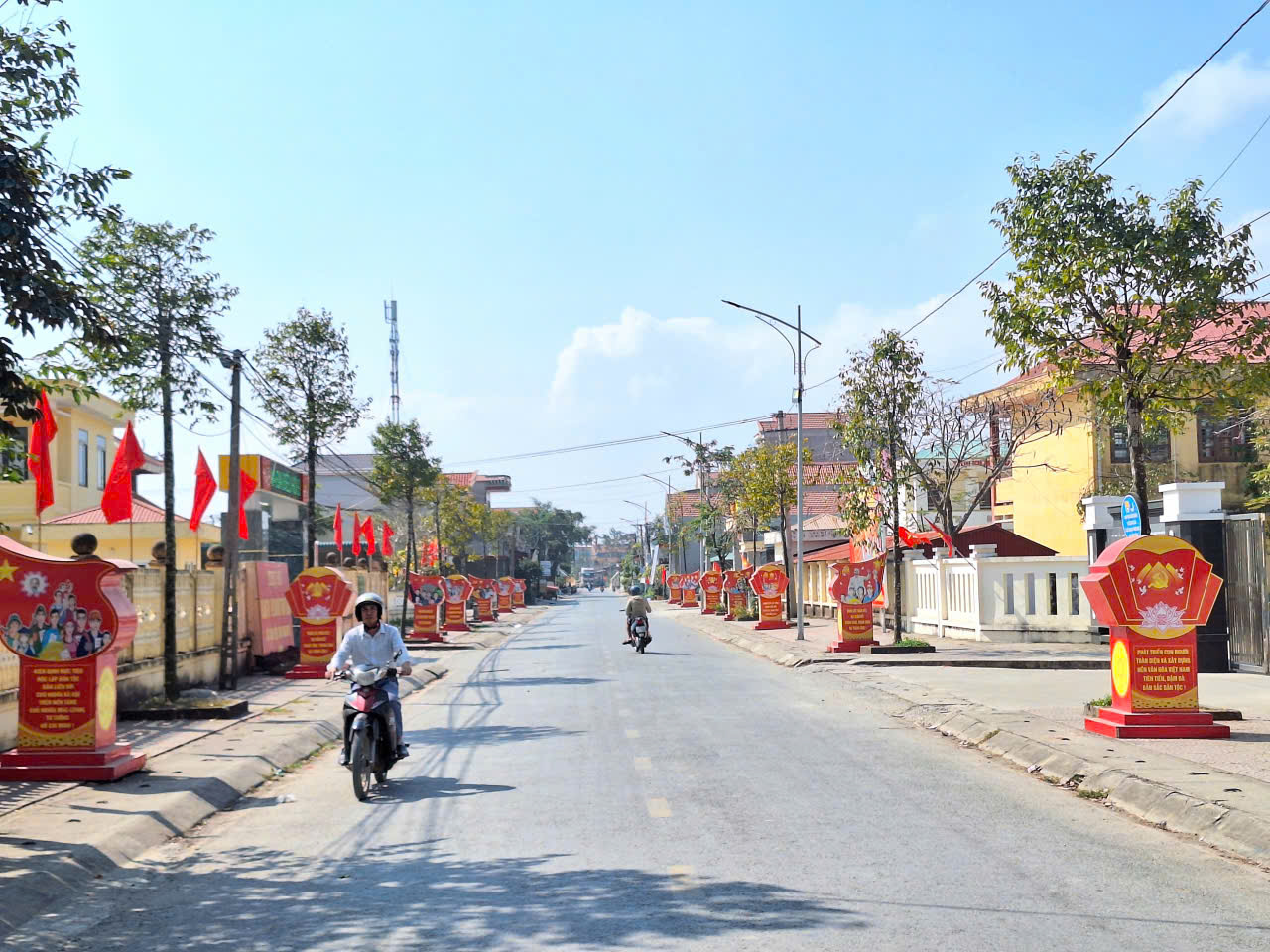 Trên các tuyến đường chính thuộc xã Hồ Vương, cờ Đảng, cờ Tổ quốc rực đỏ, băng rôn, khẩu hiệu chào mừng Đại hội đã được trang hoàng tạo nên không khí trang nghiêm, phấn khởi.