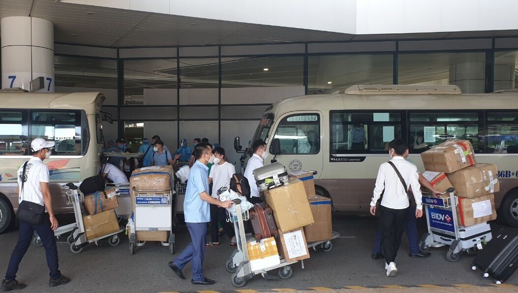 Chuyến bay đưa 59 cán bộ y tế của tỉnh Thanh Hóa từ TP Hồ Chí Minh trở về đã hạ cánh xuống Sân bay Nội Bài (Hà Nội).