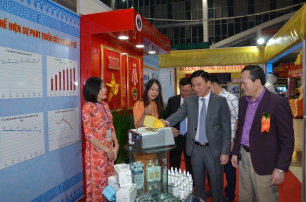 Các đồng chí lãnh đạo tỉnh tham quan gian trưng bày của Sở Y tế