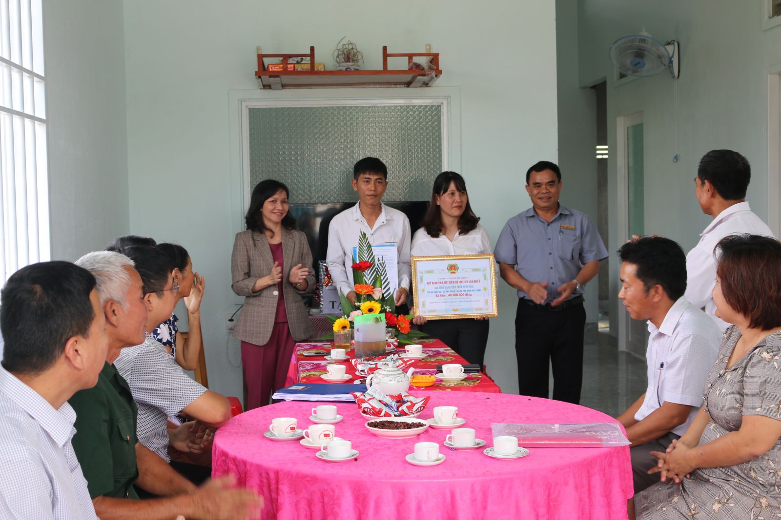 Đồng chí Nguyễn Thị Tường Loan – Phó Bí thư thường trực Thành uỷ, Trưởng ban điều hành quỹ cùng đồng chí Nguyễ Đức Thuận – Bí thư Đảng uỷ - Chủ tịch HĐND xã Hoà Xuân trao quyết định hỗ trợ cho gia đình ông Trần Tuấn Hoà.
