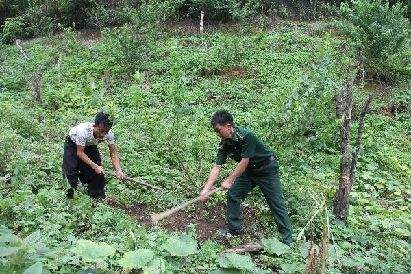 Trung úy Vàng Lao Lừ thường xuyên hướng dẫn bà con cách trồng trọt, chăn nuôi, ứng dụng khoa học công nghệ hiệu quả.