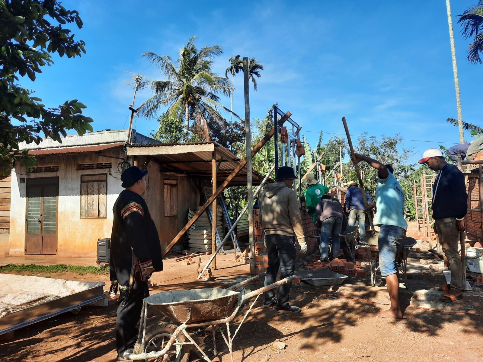 Bà con trong buôn cũng rất thương cho hoàn cảnh gia đình chị lên đã giúp gia đình chị những ngày công xây dựng căn nhà.