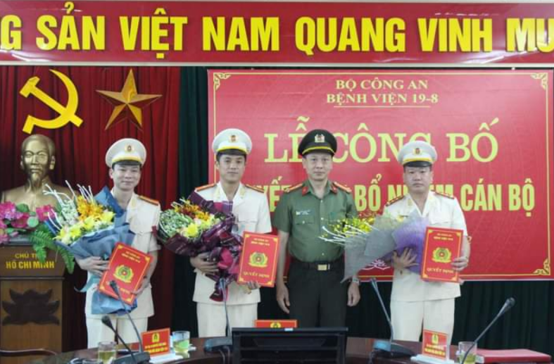 BSCKII. Hà Hải Anh (ngoài cùng bên phải) cùng đồng nghiệp trong ngày vui Công bố quyết định bổ nhiệm cán bộ tại Bệnh viện 19-8 Bộ Công an.