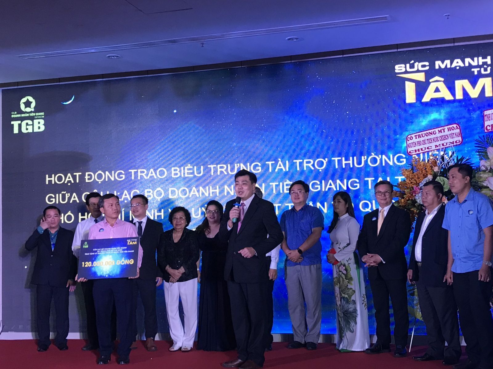 Và minh chứng rõ rằng nhất cho "SỨC MẠNH TỪ TÂM" của những người doanh nhân Tiền Giang - những người con luôn vươn mình ra biển lớn nhưng cũng không quên hướng về quê hương, cộng đồng. CLB Doanh nhân Tiền Giang tại TP.HCM đã quyết định trao tặng 120 triệu đồng đến Ủy Ban Mặt Trận Tổ Quốc Việt Nam tỉnh Tiền Giang, từ đó tăng cường công tác phối hợp và nâng cao hiệu quả trong các hoạt động an sinh xã hội đầy ý nghĩa tại quê hương Tiền Giang.