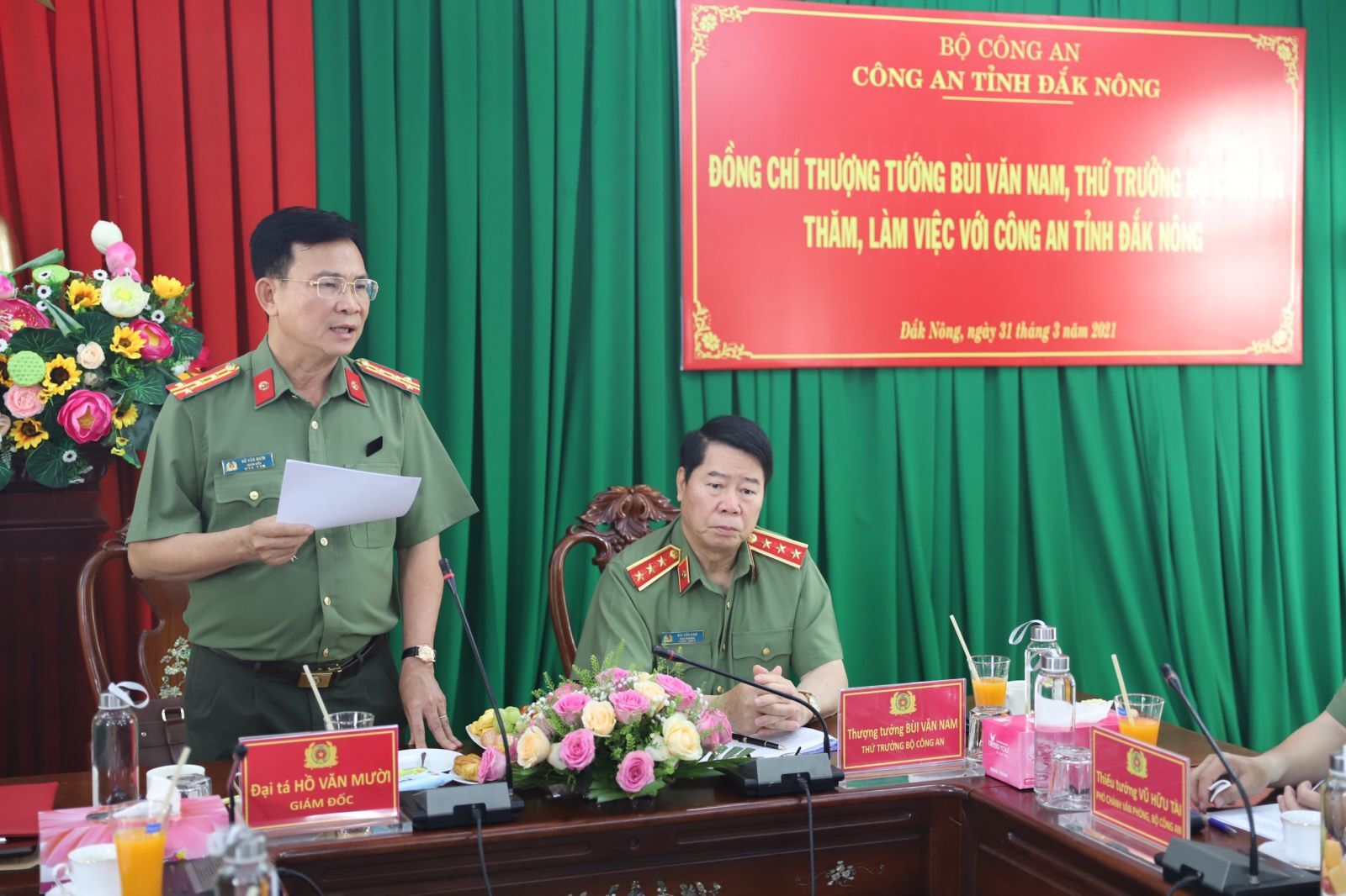 Phát biểu tại buổi làm việc, thay mặt Đảng ủy Công an Trung ương, lãnh đạo Bộ Công an, Thượng tướng Bùi Văn Nam, Thứ trưởng Bộ Công an ghi nhận, biểu dương và đánh giá cao về kết quả đạt được cũng như những cách làm hay, sáng tạo của Công an tỉnh Đắk Nông trong các mặt công tác, mặc dù còn nhiều khó khăn nhưng Công an Đắk Nông đã đoàn kết, nỗ lực, vượt khó, hoàn thành xuất sắc nhiệm vụ chính trị được giao, lập nhiều thành tích, chiến công xuất sắc, trong đó có nhiều vụ án, chuyên án lớn được lực lượng Công an Đắk Nông đấu tranh, khám phá nhanh được các cấp lãnh đạo và quần chúng nhân dân ghi nhận, đánh giá cao.