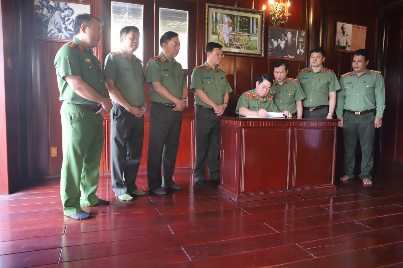 Thượng tướng Bùi Văn Nam, Thứ trưởng Bộ Công an ghi sổ lưu niệm tại Nhà tưởng niệm Chủ tịch Hồ Chí Minh trong khuôn viên Công an tỉnh.