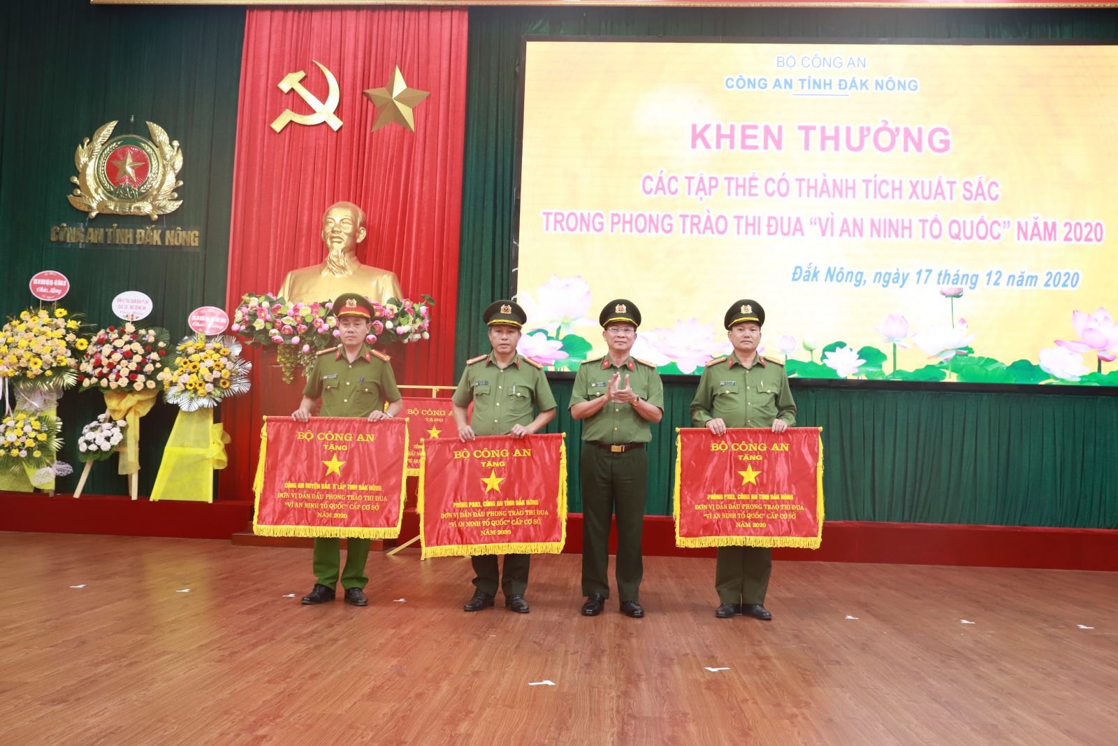Tổng kết phong trào thi đua Vì an ninh Tổ quốc năm 2020, Công an tỉnh Đắk Nông vinh dự được Bộ Công an tặng cờ thi đua xuất sắc; nhiều lượt tập thể, cá nhân được Đảng, Nhà nước tặng nhiều phần thưởng cao quý, Bộ Công an, UBND tặng nhiều bằng khen, giấy khen. Đây là năm thứ 3 liên tiếp Công an tỉnh Đắk Nông được Bộ Công an tặng cờ thi đua xuất sắc.