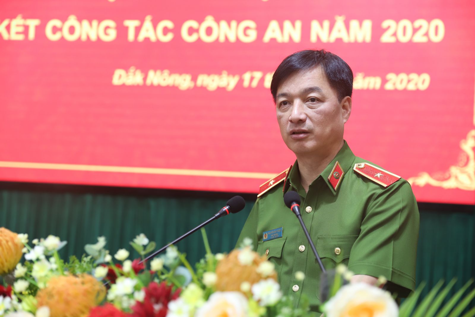 Phát biểu chỉ đạo tại hội nghị, đồng chí Thiếu tướng Nguyễn Duy Ngọc - Thứ trưởng Bộ Công an đã ghi nhận, biểu dương, chúc mừng và đánh giá cao về những thành tích, chiến công cũng như kết quả mà lực lượng Công an Đắk Nông đã đạt được trong năm 2020. Đặc biệt là Công an Đắk Nông đã có nhiều đổi mới, sáng tạo và triển khai nghiêm túc các mặt công tác Công an cũng như việc triển khai nhiệm vụ công tác Công an năm 2021 theo chỉ đạo của cấp trên. Về nhiệm vụ trong thời gian tới, đồng thứ trưởng Bộ Công an và đồng chí Chủ tịch UBND tỉnh yêu cầu, lực lượng Công an Đắk Nông phát huy truyền thống và những thành tích, kết quả đã đạt được tiếp tục làm tốt công tác xây dựng Đảng, xây dựng lực lượng gần dân, sâu sát cơ sở; chủ động nắm chắc tình hình, làm tốt công tác tham mưu với Bộ Công an và cấp ủy, chính quyền địa phương, chủ động triển khai đồng bộ các biện pháp công tác, đấu tranh có hiệu quả với các loại tội phạm; bảo đảm ANTT, phục vụ có hiệu quả nhiệm vụ phát triển kinh tế, xã hội tại địa phương. Trước mắt, tập trung thực hiện có hiệu quả đợt cao điểm tấn công, trấn áp tội phạm, bảo đảm an ninh, trật tự Đại hội Đảng toàn quốc lần thứ XIII và Tết Nguyên đán Tân Sửu 2021.
