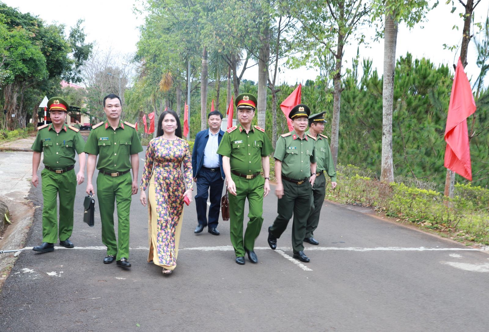 Thứ trưởng cùng lãnh đạo tỉnh đi thăm nơi làm việc của cán bộ chiến sĩ Công an tỉnh.
