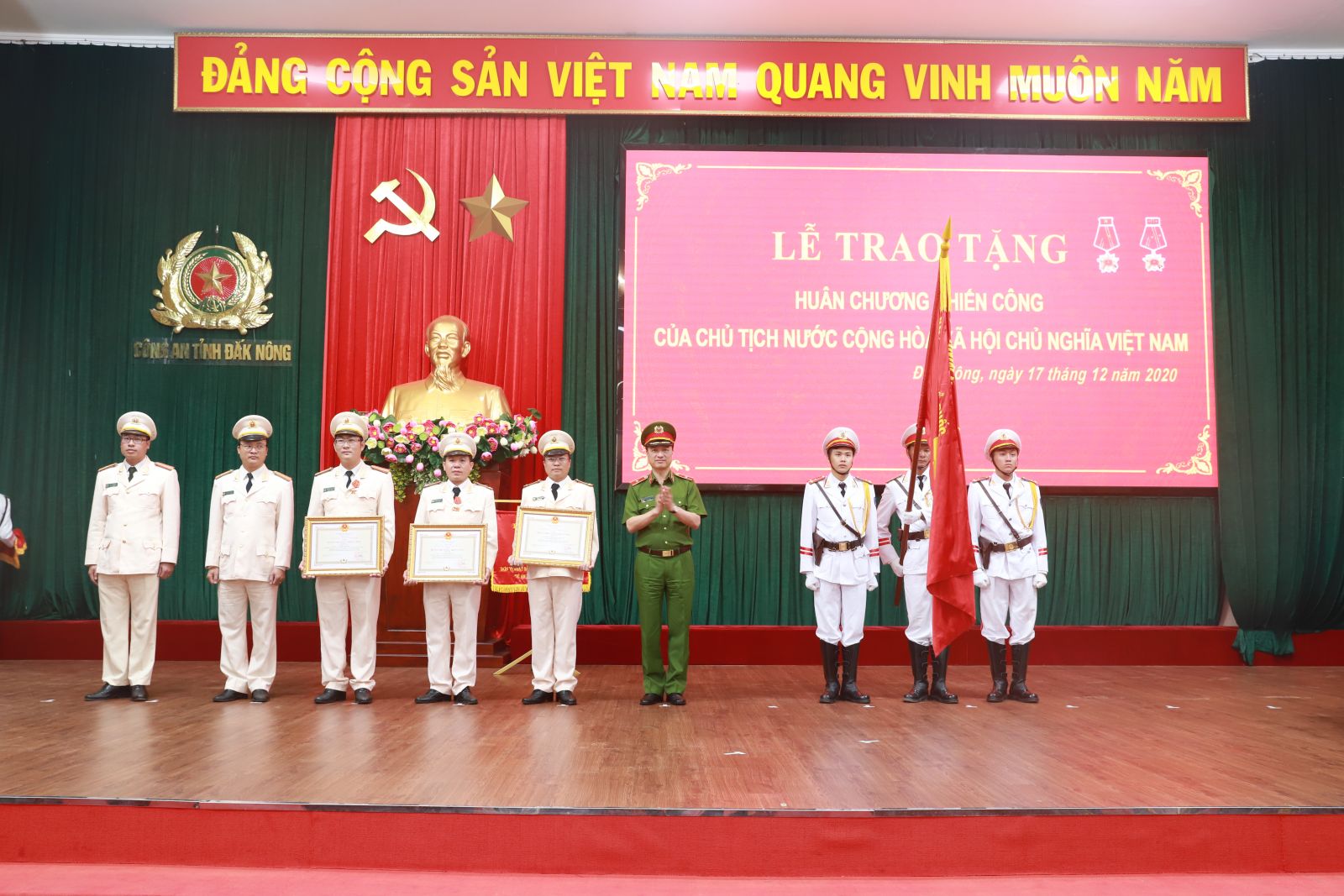 Nhân dịp này, thừa ủy quyền, Thiếu tướng Nguyễn Duy Ngọc – Thứ trưởng Bộ Công an đã trao Huân chương Chiến công hạng ba cho tập thể Cơ quan CSĐT Công an tỉnh; Huân chương Chiến công hạng nhì và hạng ba cho 2 cá nhân; UBND tỉnh Đắk Nông trao bằng khen của Thủ tướng Chính phủ cho Phòng công tác Đảng và công tác Chính trị; Phòng Cảnh sát kinh tế Công an tỉnh và cho 6 cá nhân.