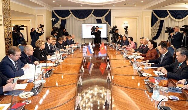 Nhận lời mời của Chủ tịch Hội đồng Liên bang Nga Valentina Matvienko, Chủ tịch Duma Quốc gia Liên bang Nga Vyacheslav Volodin, Chủ tịch Quốc hội Nguyễn Thị Kim Ngân và Đoàn đại biểu cấp cao Quốc hội Việt Nam thăm chính thức Liên bang Nga từ ngày 8/12. Chiều 10/12, tại Trụ sở Hội đồng Liên bang Nga, thủ đô Moskva, Chủ tịch Hội đồng Liên bang Nga Valentina Matvienko đã chủ trì lễ đón trọng thể Chủ tịch Quốc hội Nguyễn Thị Kim Ngân và Đoàn.