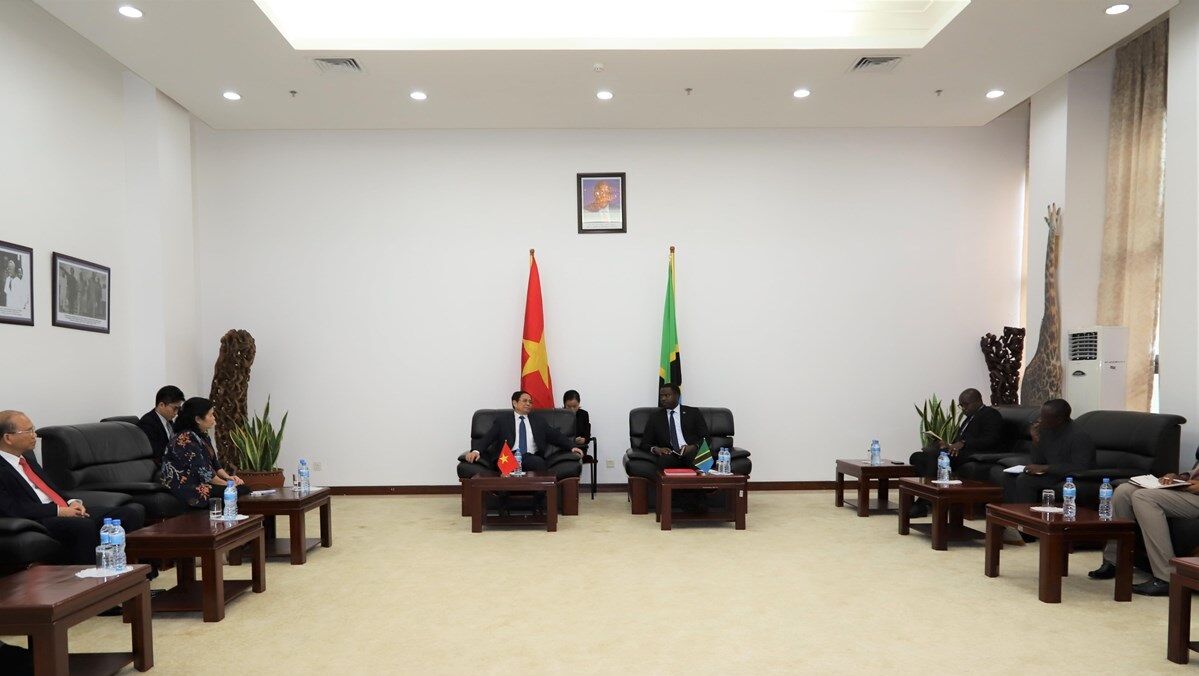Trưởng Ban Tổ chức Trung ương Phạm Minh Chính làm việc với Bộ trưởng Công Thương Tanzania trong chuyến thăm và làm việc tại Tanzania, chiều 5/12/2019. Ảnh: TTXVN