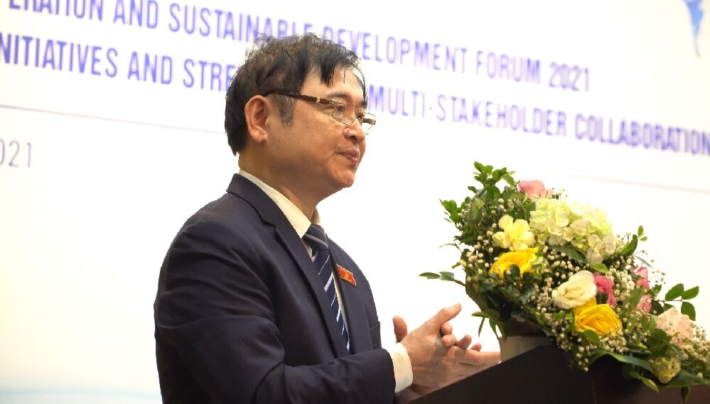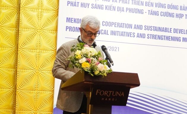 Tại diễn đàn, ngài Giorgio Aliberti – Đại sứ Phái đoàn Liên minh Châu Âu tại Việt Nam phát biểu: “Hôm nay, khi chúng ta cùng tập hợp tại Diễn đàn về Đồng bằng sông Cửu Long của VUSTA, cả thế giới đang tập trung cho Hội nghị COP 26 thuộc Công ước khung của Liên hợp quốc về Biến đổi khí hậu tại Glasgow. Hội nghị COP 26 lần này có một thách thức kép đó là tăng cường nỗ lực ứng phó với biến đổi khí hậu, đồng thời vượt qua và phục hồi một cách bền vững hơn sau đại dịch COVID-19. EU và Việt Nam đang có những cam kết mạnh mẽ tại COP 26. Chúng ta có thể dễ dàng nhận thấy những sự tương đồng với Đồng bằng sông Cửu Long của Việt Nam, nơi phải đối mặt với những thách thức to lớn như sụt lún đất, xói mòn bờ biển, nước biển dâng, nhiễm mặn, mất rừng ngập mặn và các vấn đề về quản lý chất lượng nước, cát dưới lòng sông và nước ngầm. Nền kinh tế và sinh kế của người dân cũng bị ảnh hưởng nặng nề bởi đại dịch COVID-19. Điều này kêu gọi cần có hành động tập thể mạnh mẽ của tất cả các bên liên quan để khắc phục và phục hồi bền vững hơn. Team Europe, bao gồm EU và các Quốc gia Thành viên, sẽ tiếp tục hỗ trợ đáng kể cho sự phát triển bền vững của Đồng bằng sông Cửu Long của Việt Nam.