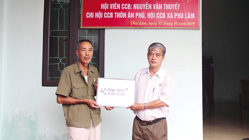 Bàn giao kinh phí hỗ trợ xây dựng nhà cho gia đình ông Nguyễn Văn Thuyết, thôn Ân Phú, xã Phú Lâm.