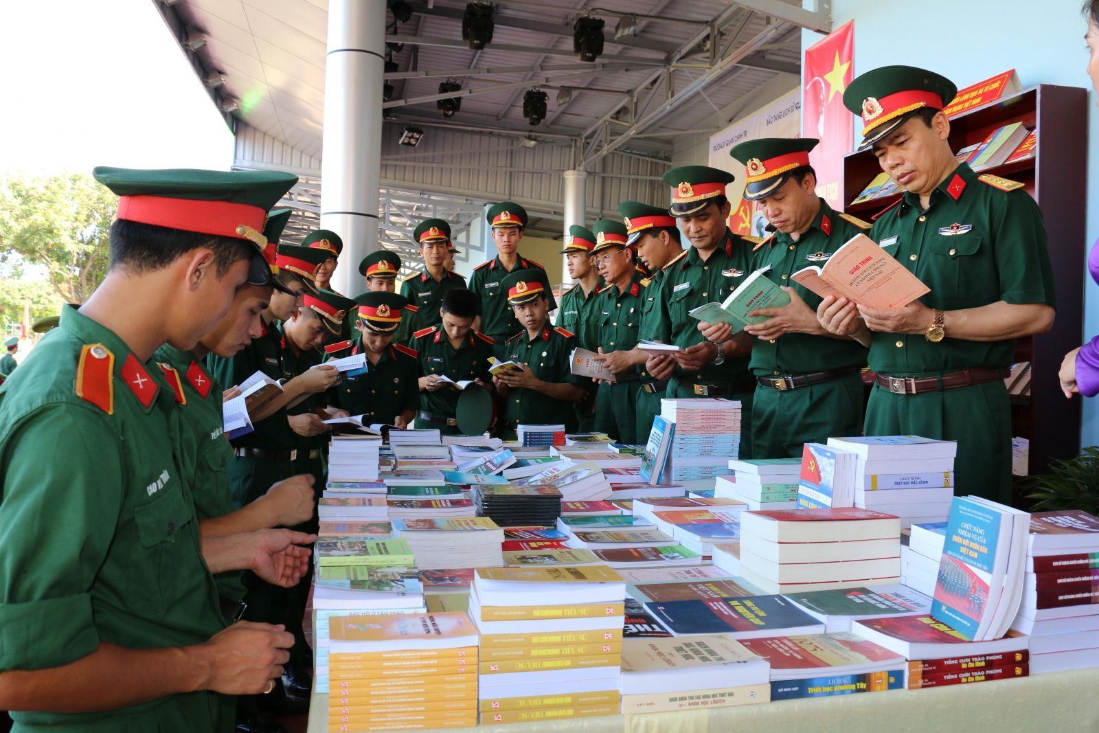 Tổng Bí thư, Chủ tịch nước, Bí thư Quân ủy Trung ương Nguyễn Phú Trọng và các đại biểu thăm gian trưng bày các ấn phẩm quốc phòng tại Đại hội đại biểu Đảng bộ Quân đội lần thứ XI, nhiệm kỳ 2020 - 2025 _Ảnh: TTXVN