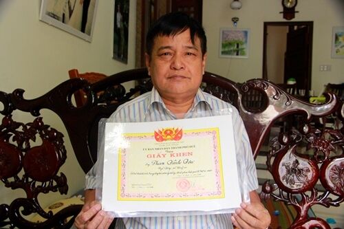 Phan Đình Đơn với tấm bằng khen được tặng 20 năm về trước.
