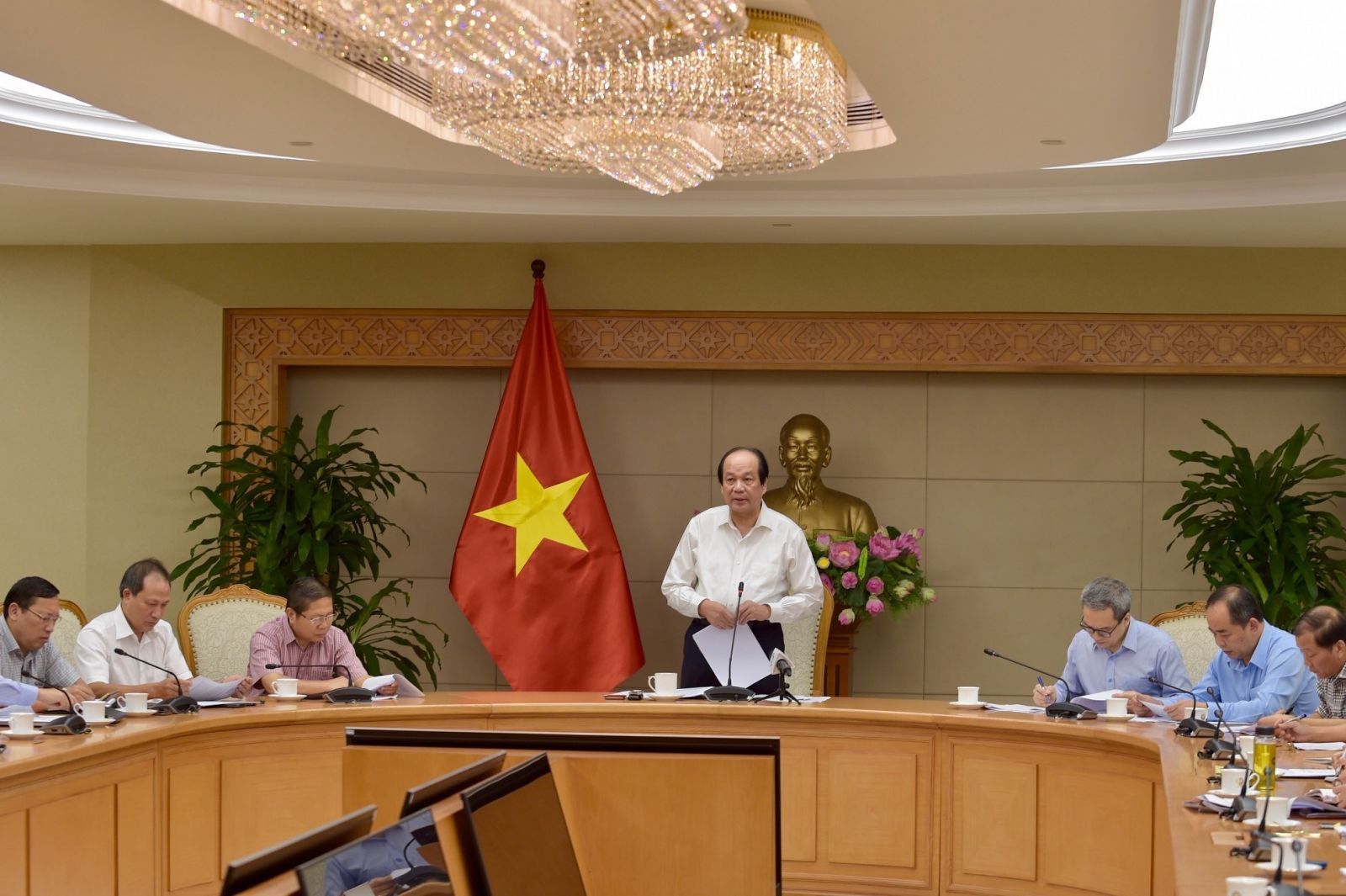 Tổ trưởng Mai Tiến Dũng nhắc lại quan điểm của Chính phủ, Thủ tướng là luôn đặc biệt quan tâm công tác xây dựng thể chế, đôn đốc các bộ, cơ quan ban hành các văn bản quy định chi tiết, cắt giảm, đơn giản hóa các điều kiện kinh doanh, thủ tục hành chính.