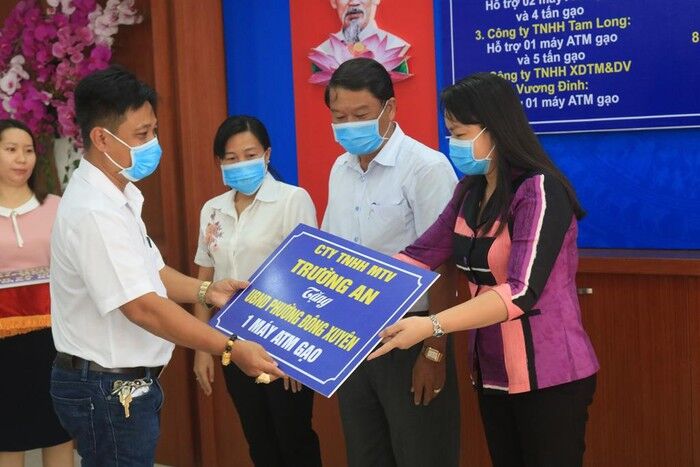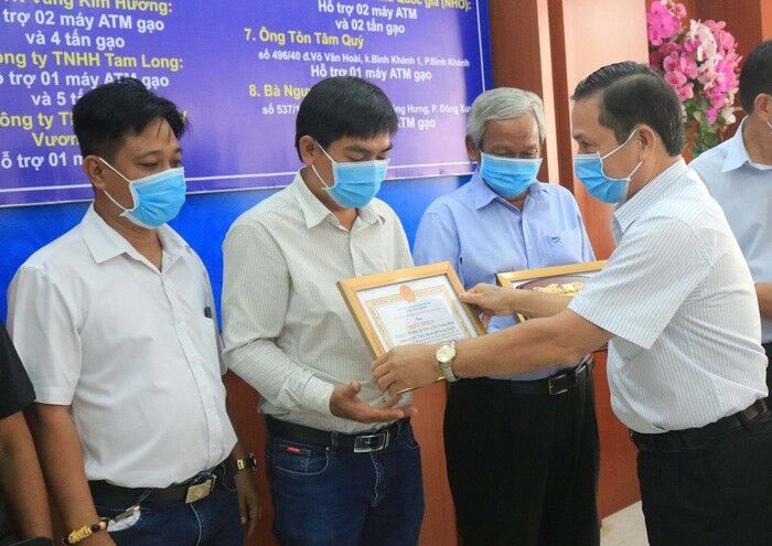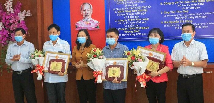 Theo thông tin, thành phố đã vận động được cụ thể như sau: Bí thư Tỉnh ủy Võ Thị Ánh Xuân vận động hỗ trợ 5 tấn gạo, Công ty TNHH Phú Cường hỗ trợ 3 máy ATM gạo và 30 tấn gạo, DNTN Vàng Kim Hương hỗ trợ 2 máy ATM gạo và 4 tấn gạo, Công ty TNHH Tam Long hỗ trợ 1 máy ATM gạo và 5 tấn gạo, Công ty TNHH XD Hải Toàn hỗ trợ 1 máy ATM gạo và 1 tấn gạo; Công ty TNHH XDTM&DV Vương Đỉnh hỗ trợ 1 máy ATM gạo.