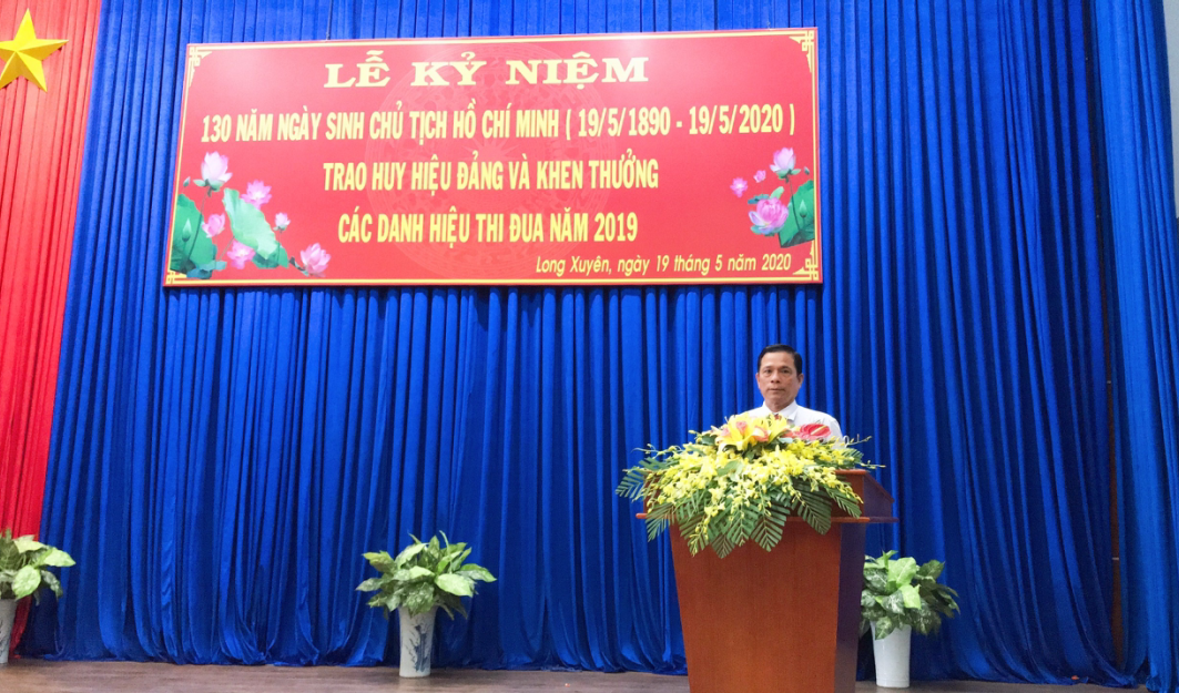 Tại buổi lễ, đồng chí Phạm Thành Thái - Bí thư Thành ủy kiêm Chủ tịch UBND TP. Long Xuyên (An Giang) tự hào chia sẻ về cuộc đời cách mạng hào hùng của Chủ tịch Hồ Chí Minh. Đồng chí Phạm Thành Thái nói “Công lao của Chủ tịch Hồ Chí Minh đối với dân tộc Việt Nam ví như non cao, biển rộng. Người đã gắn bó và hiến dâng trọn đời mình cho sự nghiệp cách mạng của Đảng và dân tộc ta, hết lòng hết sức phụng sự tổ quốc, phục vụ nhân dân cho đến hơi thở cuối cùng. Tên tuổi và sự nghiệp của Chủ tịch Hồ Chí Minh sống mãi trong sự nghiệp của chúng ta. Với những cống hiến xuất sắc cho dân tộc và cho nhân loại tiến bộ. Năm 1990, nhân dịp kỷ niệm 100 năm Ngày sinh Chủ tịch Hồ Chí Minh, Tổ chức Giáo dục, Khoa học và Văn hoá Liên Hợp quốc (UNESCO) đã công nhận Hồ Chí Minh là “Anh hùng giải phóng dân tộc, Nhà văn hoá kiệt xuất Việt Nam”.