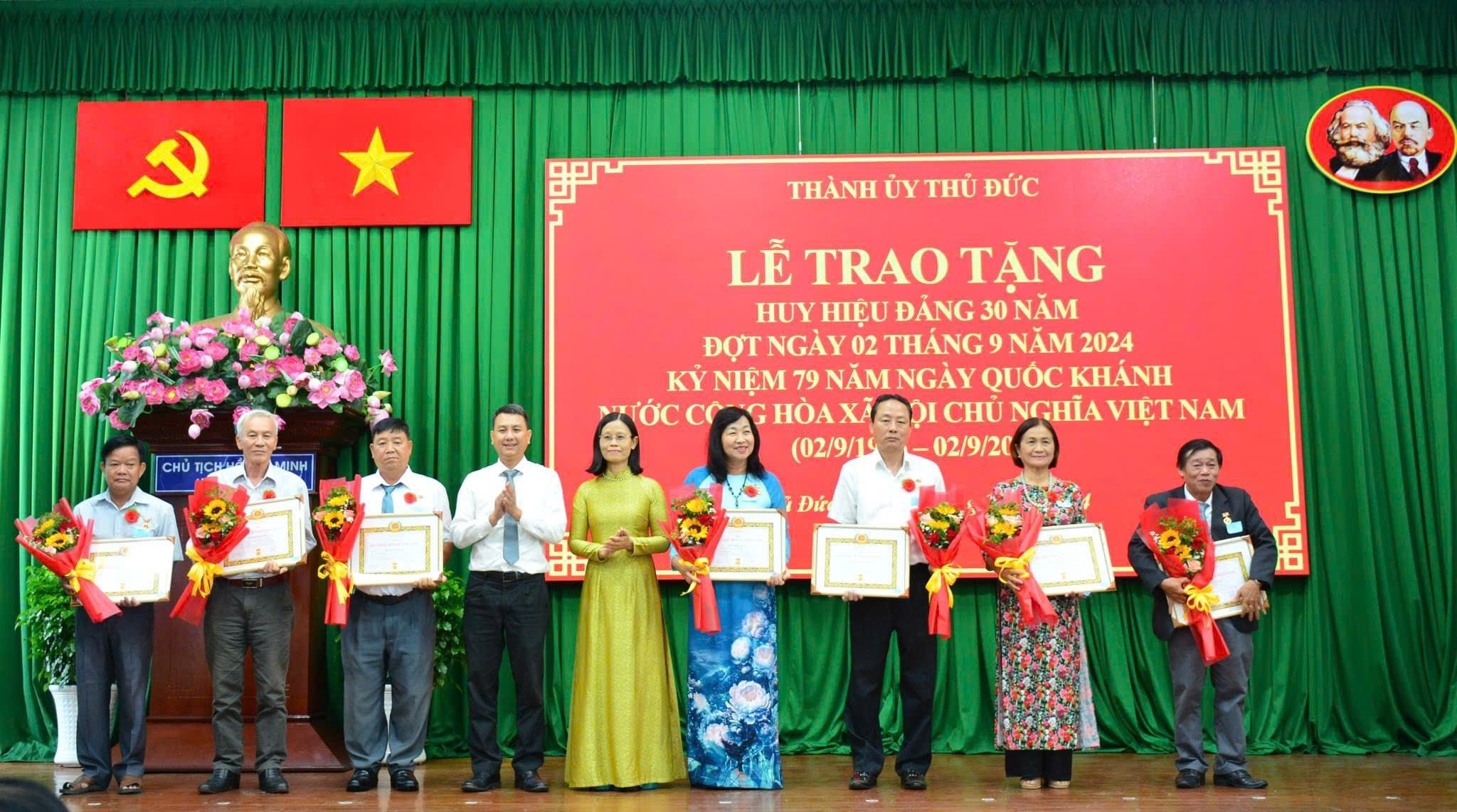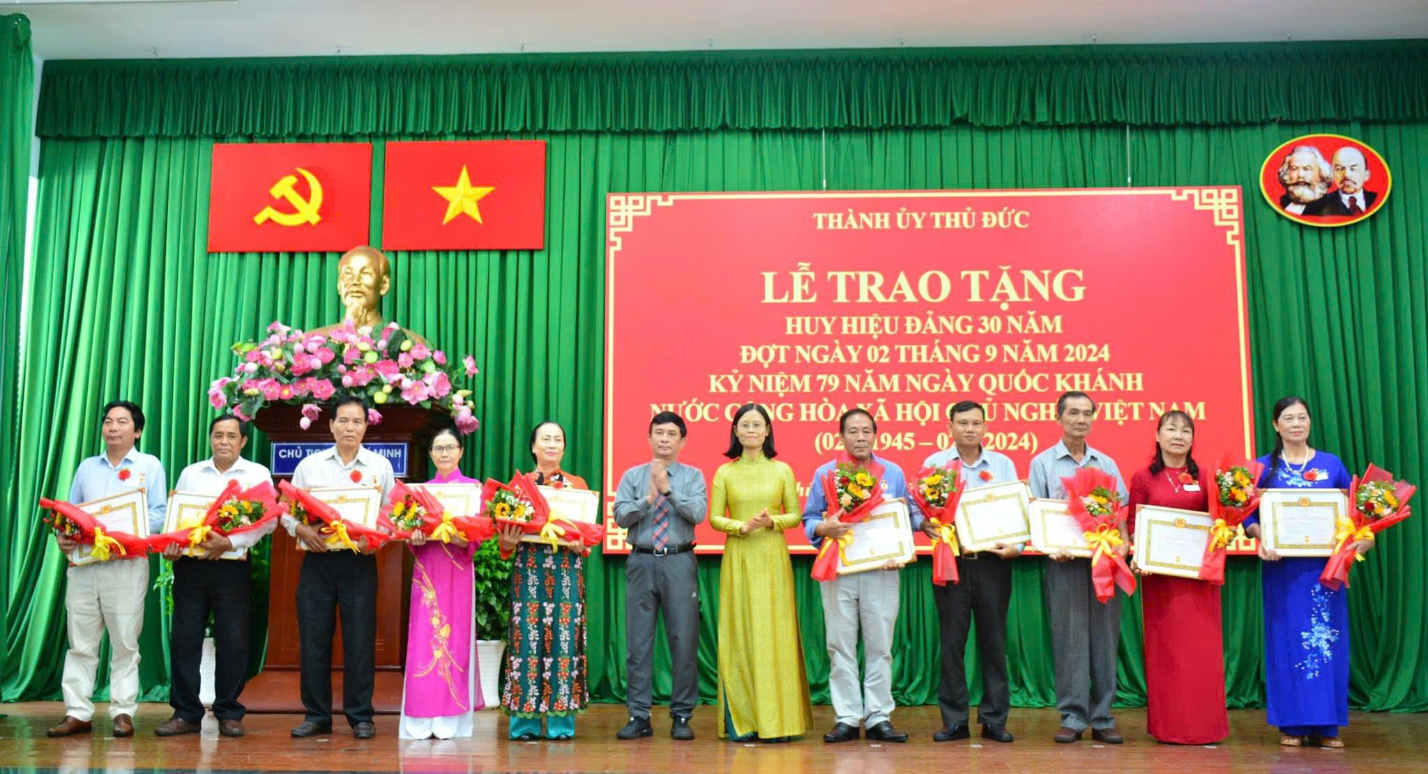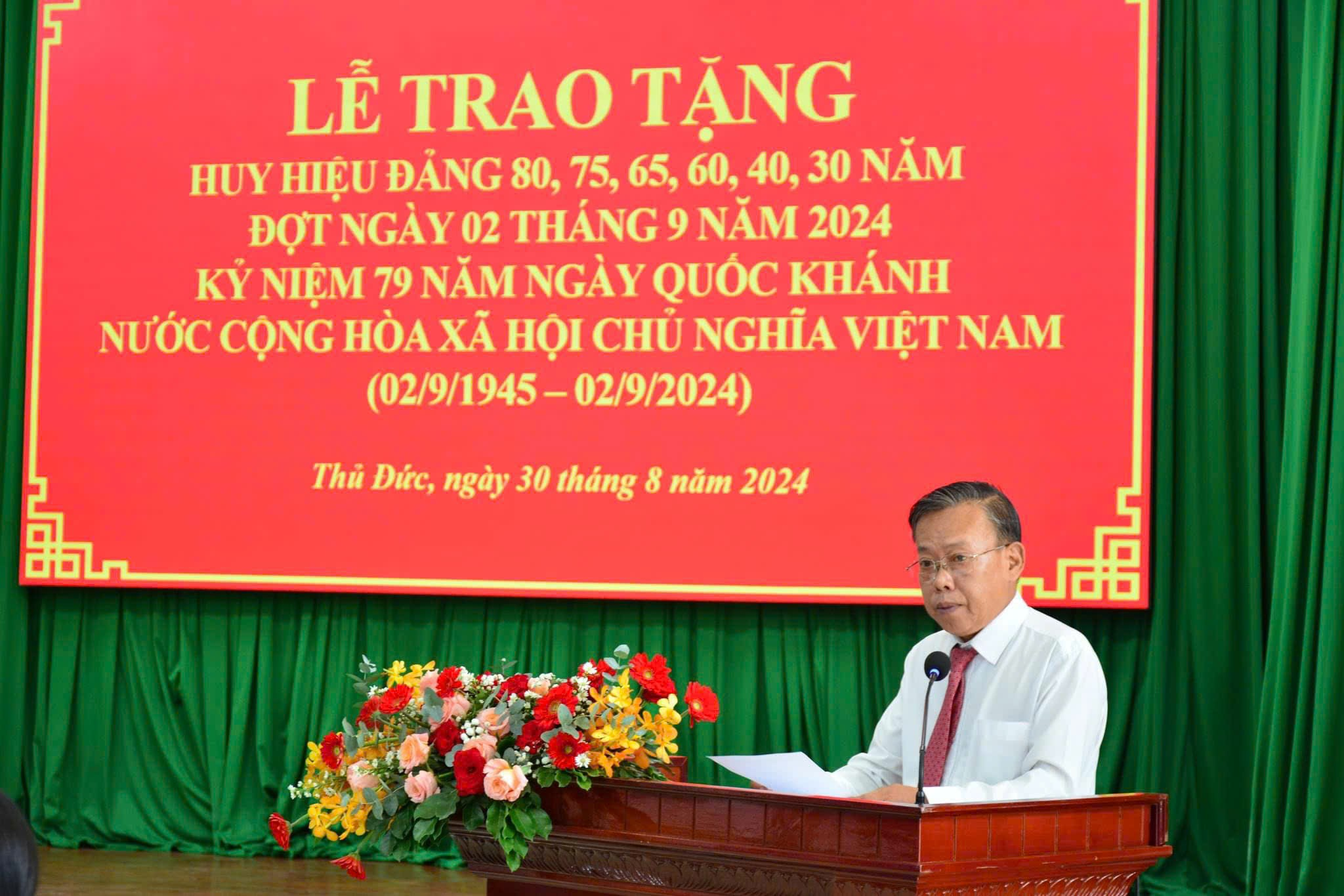 Ông Nguyễn Hữu Hiệp cho biết, trong buổi lễ trao tặng Huy hiệu Đảng đợt ngày 2/9/2024, có 521 Đảng viên được vinh dự nhận Huy hiệu với các mốc 80, 75, 65, 60, 55, 50, 45, 40 và 30 năm tuổi Đảng. Đây không chỉ là niềm vinh dự, tự hào của Đảng bộ TP Thủ Đức mà còn là động lực để các Đảng viên tiếp tục phấn đấu, rèn luyện, cống hiến, không phụ lòng mong mỏi của Đảng, đồng chí, đồng đội và gia đình.