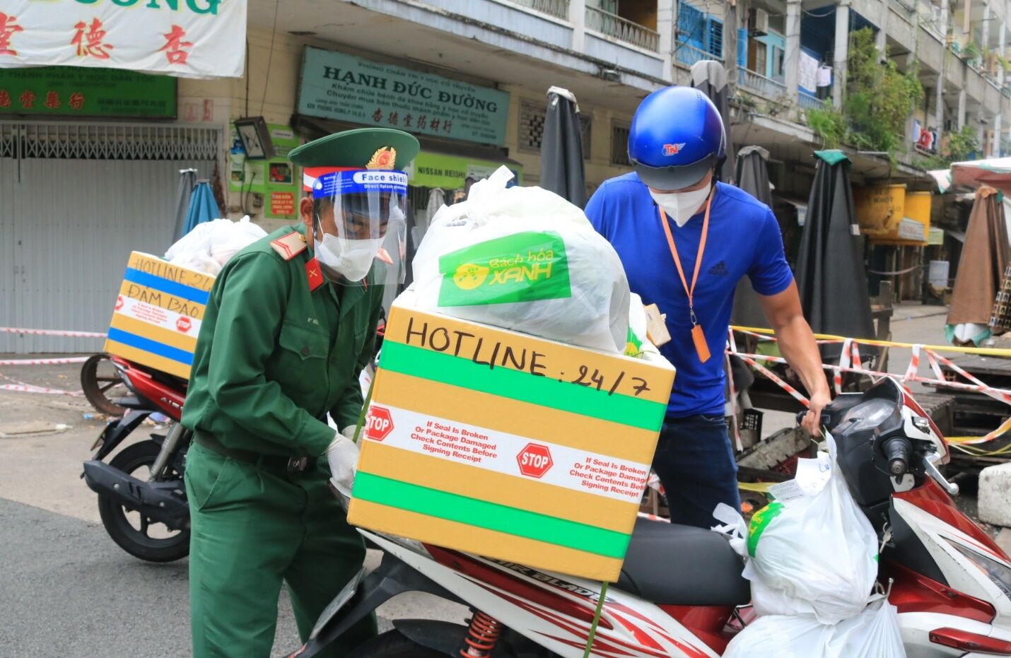 Từ sau khi TP kéo dài chỉ thị 16, thực hiện giãn cách triệt để, ai ở đâu ở yên đó để quyết tâm đẩy lùi dịch bệnh nhanh nhất có thể từ 0h ngày 23/08/2021, các lực lượng bộ đội, cảnh sát cơ động đã vào các khu dân cư, triển khai kế hoạch đi chợ hộ người dân. Các địa phương đã linh động thực hiện gói “combo” để người dân dễ dàng lựa chọn, chẳng hạn có gói “combo” 1 gồm thịt gà, rau, trứng; gói 2 gồm thịt bò, củ quả, rau xanh; gói 3 gồm thịt heo, đậu hạt, rau…