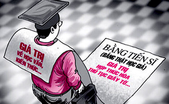 - Điều ấy cũng chẳng nói được gì cả, nếu không có thực chất. Hiện nay, chúng ta có quá nhiều tiến sĩ giấy, thạc sĩ giấy, cử nhân giấy. Điều sai lầm này bắt đầu từ quan niệm phải phải phổ cập tiến sĩ. Thế là tiến sĩ xuất hiện ùn ùn.