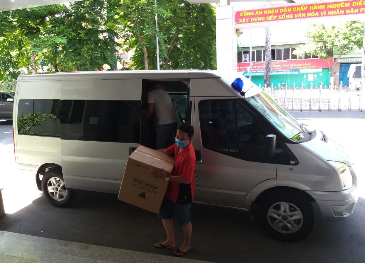 Xe vận chuyển vật phẩm đến công an Quận 6, TPHCM