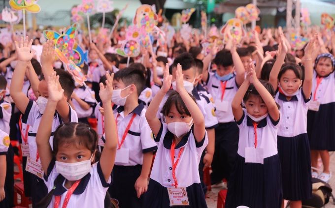 Buổi khai giảng năm học 2022-2023 được tổ chức gọn nhẹ, tạo không khí vui vẻ, phấn khởi cho học sinh – (Ảnh: Internet)
