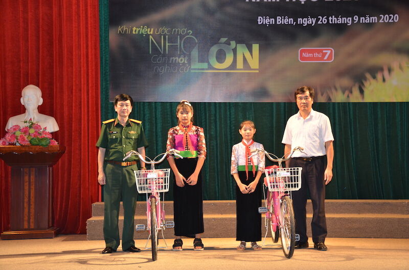 Cũng tại lễ trao học bổng, Viettel Chi nhánh Điện Biên đã trao tặng hai xe đạp cho hai học sinh dân tộc thiểu số Trường THCS xã Thanh Xương nỗ lực vượt khó vươn lên trong học tập.