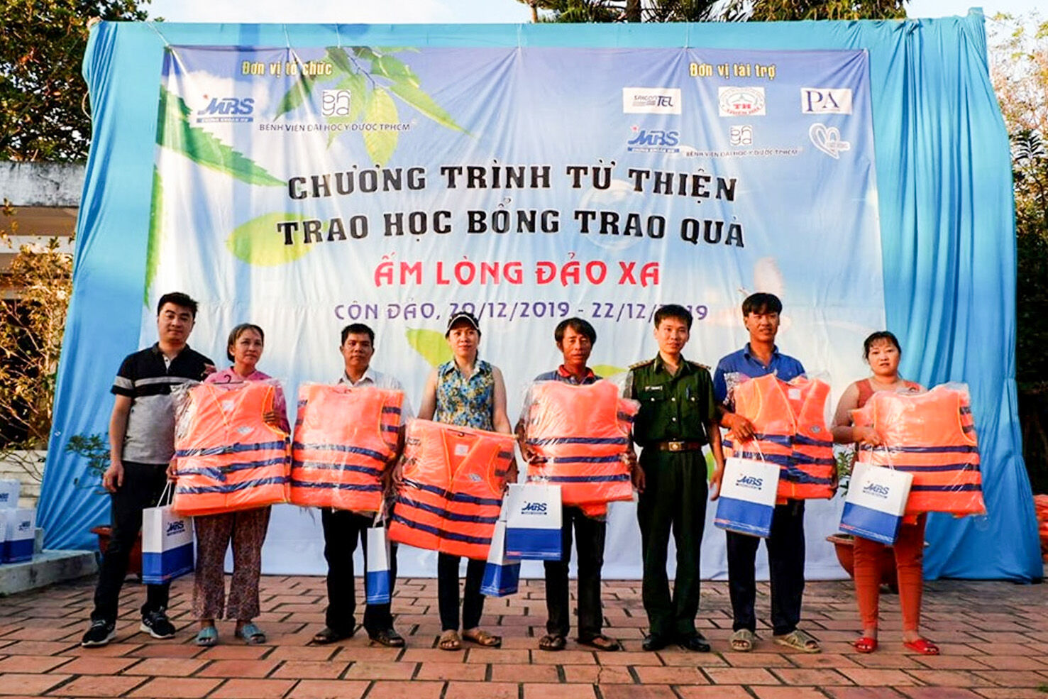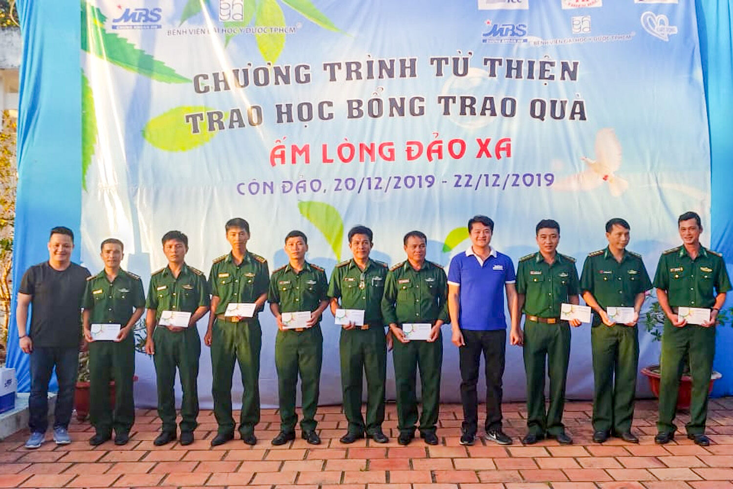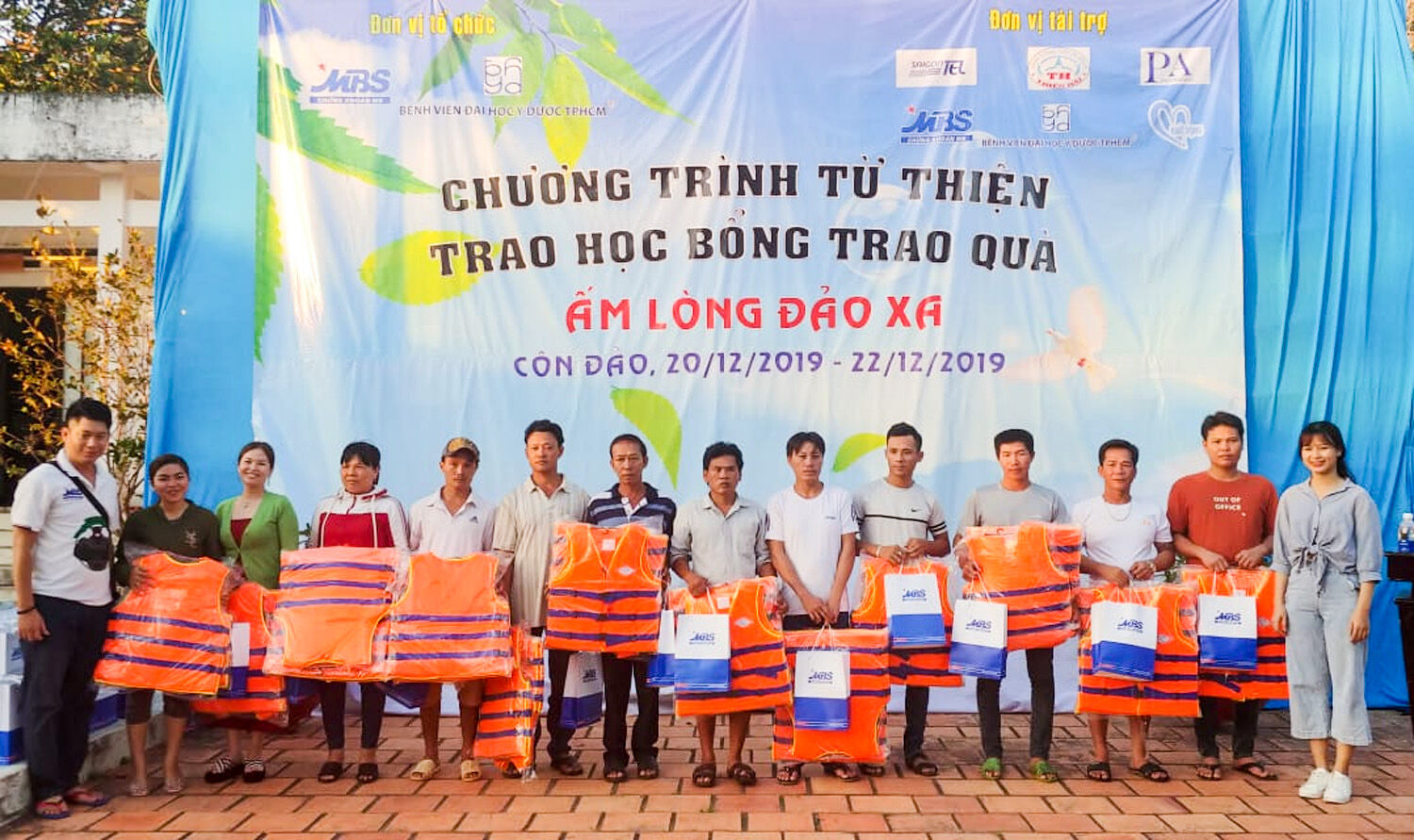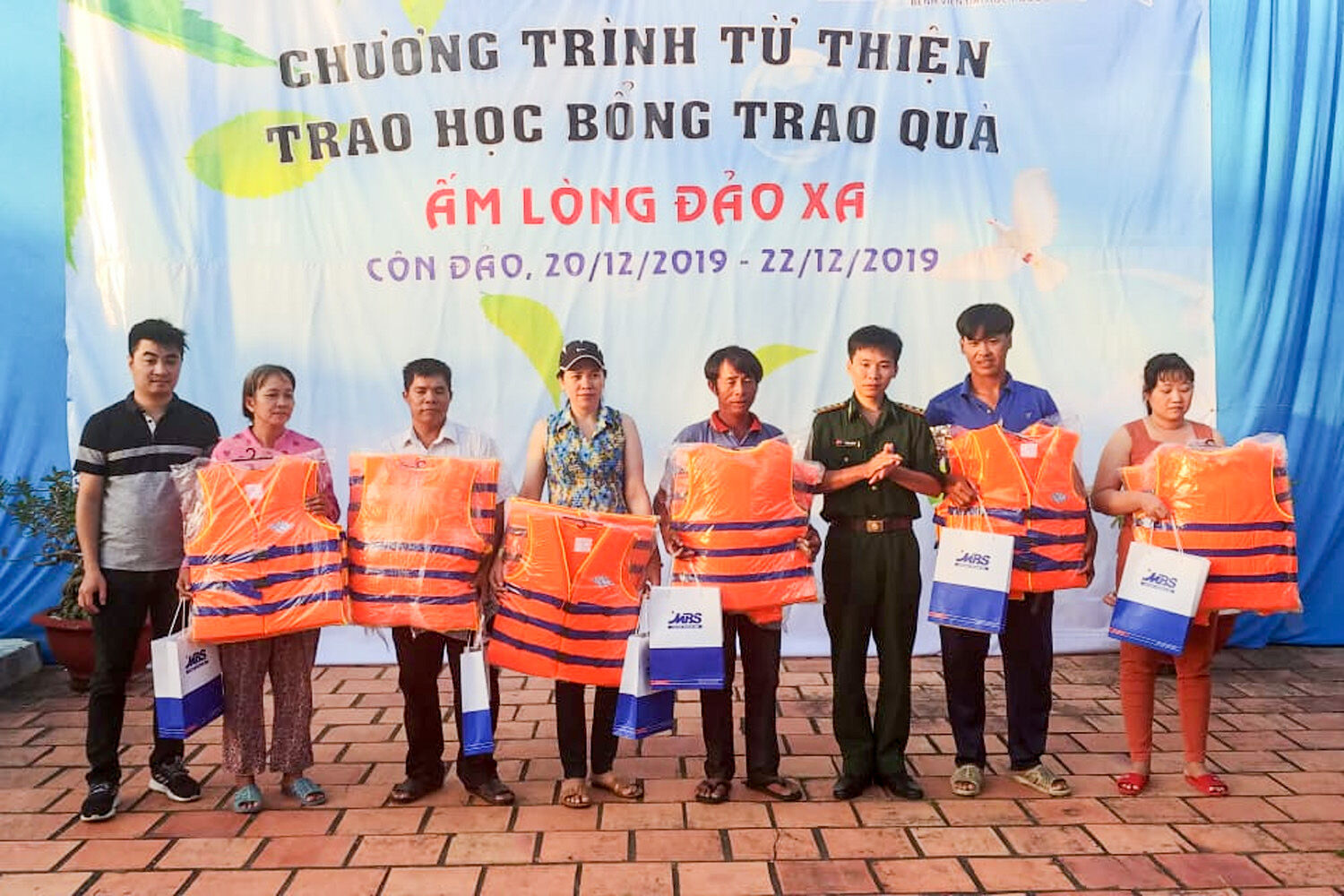 VNHN - Chiều ngày 21 tháng 12, tại trạm Biên phòng Bến Đầm, huyện Côn Đảo, tỉnh Bà Rịa - Vũng Tàu, Công ty cổ phần chứng khoán Ngân hàng quân đội MBS, Bệnh viện Đại học y dược TP. HCM cùng với một số doanh nhân, doanh nghiệp, các mạnh thường quân, nhà hảo tâm đã trao tặng học bổng cho các em học sinh nghèo học giỏi và trao tặng quà, áo phao cho các gia đình các chiến sĩ biên phóng, gia đình các ngư dân có hoàn cảnh khó khăn nhân kỷ niệm 75 năm Ngày thành lập Quân đội nhân dân Việt Nam (22/12/1944 – 22/12/2019); 30 năm Ngày hội Quốc phòng toàn dân (22/12/1989 – 22/12/2019).