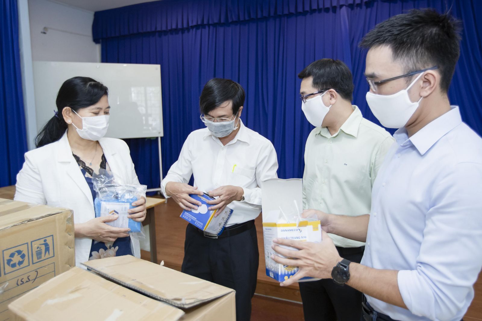 Đại diện Vinamilk thay mặt tập thể nhân viên công ty trao tặng 2.000 bộ đồ bảo hộ và khẩu trang chuyên dụng cho Sở Y tế TP.HCM.