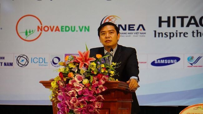 NGƯT. TS Phạm Xuân Khánh, Phụ trách trường Cao đẳng nghề Công nghệ cao Hà Nội phát biểu tại lễ khai giảng năm học mới