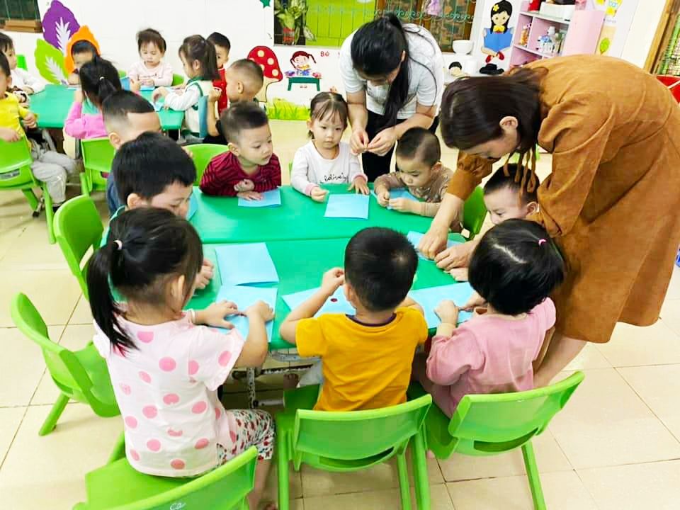 Cùng với đó, nhà trường tổ chức tốt các nội dung chương trình theo chủ đề trong năm học như, tổ chức sinh hoạt cuối chủ đề hàng tháng giúp trẻ ôn luyện, thể hiện những kiến thức, kỹ năng đã học; mạnh dạn tự tin, phối hợp nhịp nhàng cùng các bạn... Tiếp tục chỉ đạo có hiệu quả việc thực hiện đổi mới hoạt động chăm sóc, giáo dục trẻ. Đồng thời, tổ chức môi trường giáo dục, tạo cơ hội cho trẻ chủ động tham gia các hoạt động vui chơi, khám phá, trải nghiệm theo phương châm “Học bằng chơi, chơi mà học” phù hợp với độ tuổi; áp dụng các phương pháp dạy học tích cực vào việc tổ chức hoạt động giáo dục trẻ theo quan điểm giáo dục “lấy trẻ làm trung tâm” phù hợp với điều kiện thực tế của trường, lớp và khả năng của trẻ. Nhà trường tiếp tục chỉ đạo hướng dẫn giáo viên thực hiện Chương trình GDMN nhằm nâng cao chất lượng chăm sóc, giáo dục, chuẩn bị tâm thế cho trẻ em 5 tuổi vào lớp 1. Song song với đó, lồng ghép, thực hiện hiệu quả các chuyên đề nội dung giáo dục tích hợp trong thực hiện Chương trình giáo dục mầm non đó là: giáo dục an toàn giao thông; giáo dục bảo vệ môi trường; giáo dục sử dụng năng lượng tiết kiệm hiệu quả; giáo dục bảo vệ tài nguyên, môi trường biển, hải đảo; giáo dục ứng phó với biến đổi khí hậu và phòng chống thảm họa thiên tai đảm bảo phù hợp với điều kiện vùng miền và đối tượng trẻ nhằm giúp trẻ sống thân thiện với môi trường và có những thói quen, hành vi phù hợp để góp phần giảm thiểu thảm họa thiên tai, tự bảo vệ bản thân trong những trường hợp khẩn cấp. Bên cạnh đó, tiếp tục thực hiện các chính sách ưu tiên trong giáo dục đối với trẻ khuyết tật học hòa nhập. Chủ động linh hoạt tổ chức các hoạt động chăm sóc, giáo dục, hỗ trợ trẻ khuyết tật nhằm tạo điều kiện để trẻ khuyết tật được học hòa nhập có chất lượng. Phối hợp với các đơn vị, lực lượng ở địa phương để tổ chức tốt việc phát hiện, can thiệp sớm cho trẻ khuyết tật ở độ tuổi mầm non.