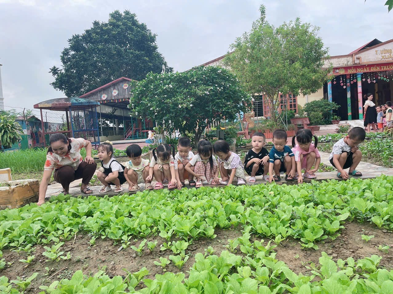Các bé được khám phá khu vườn rau xanh - sạch của nhà trường
