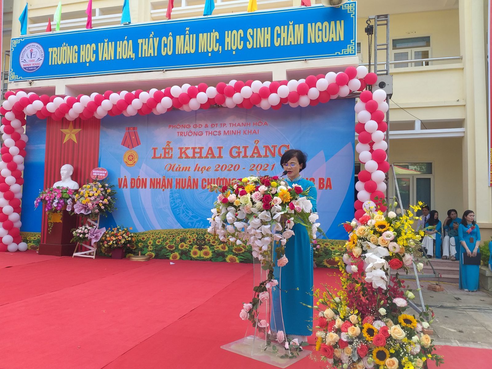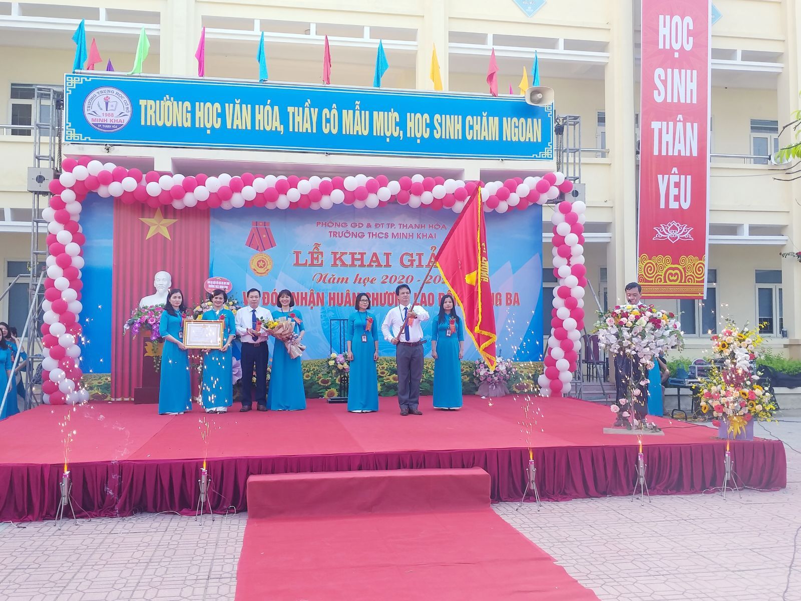 VNHN- Sáng ngày 5/9 cùng với cả nước, thầy và trò Trường THCS Minh Khai (TP Thanh Hóa) tổ chức Lễ khai giảng năm học 2020-2021 và đón nhận Huân chương Lao động hạng Ba của Chủ tịch nước.