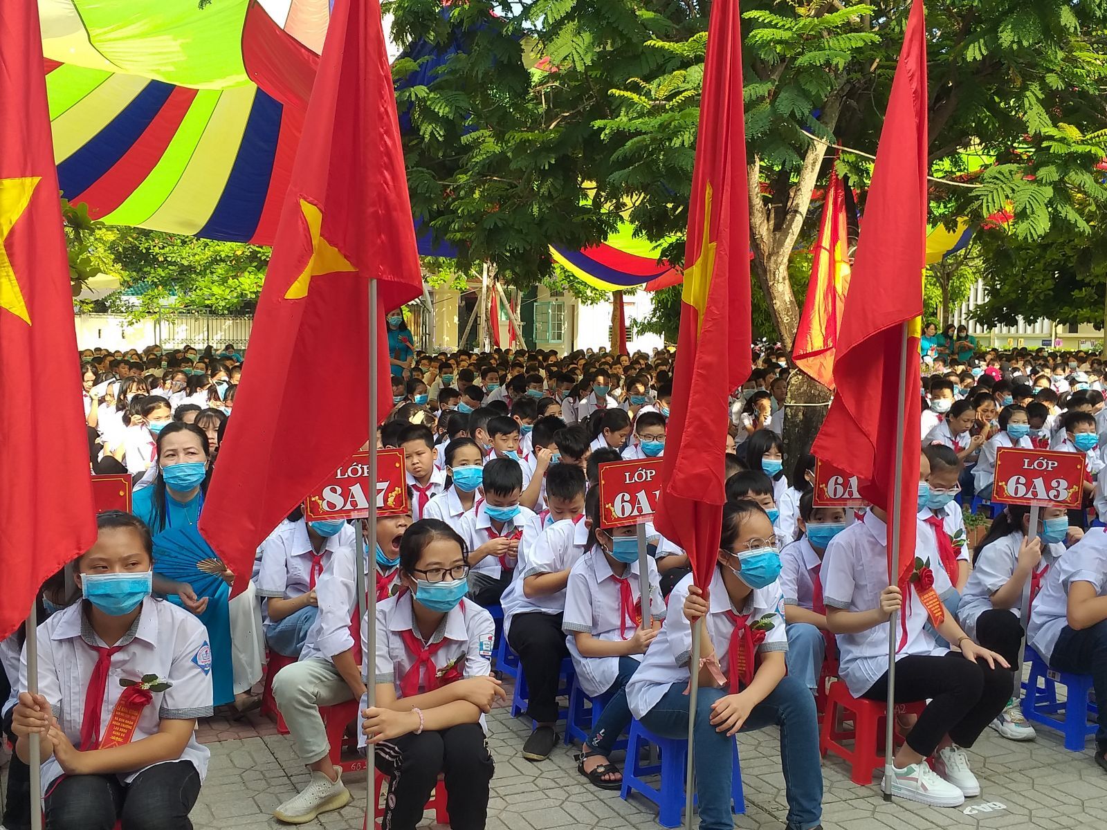 Học sinh trường THCS Minh Khai trong lễ khai giảng năm học mới