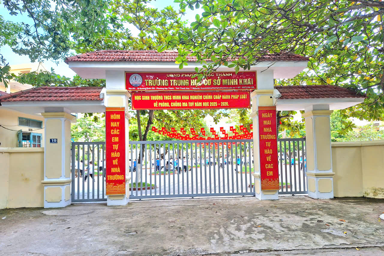 Từ những nỗ lực đổi mới, sáng tạo trong dạy và học, trường THCS Minh Khai đã đạt được nhiều thành tích, kết quả đáng ghi nhận, điển hình như nhìn lại năm học 2024-2025 là một năm đáng nhớ với nhiều thành tích nổi bật, tập thể nhà trường đã tích cực triển khai các hoạt động thực hiện nhiệm vụ giáo dục và giảng dạy cơ bản hoàn thành tốt nhiệm vụ được đề ra. Minh chứng là chất lượng văn hóa đại trà có nhiều chuyển biến rõ rệt, toàn trường có 31 lớp với tổng số học sinh là 1643 em, trong đó kết quả rèn luyện đạt loại Tốt 96,5%; loại Khá 3,4%; Kết quả học tập loại Tốt đạt 49,5%; khá đạt 34,1%. Trong kỳ thi tuyển sinh vào lớp 10 THPT năm học 2025- 2026, tỷ lệ học sinh thi đậu vào các trường THPT công lập nằm trong tốp đầu của phường và tốp đầu các trường THCS trong toàn tỉnh. Đặc biệt, nhà trường có nhiều HS đậu vào trường THPT chuyên Lam Sơn, nằm trong tốp các trường dẫn đầu cả tỉnh về chất lượng đậu vào trường Chuyên hàng năm.
