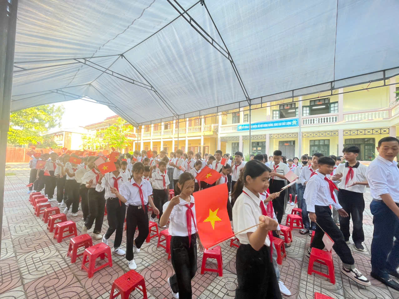 Các em học sinh Trường THCS Thuận Minh hân hoan trong ngày lễ khai giảng năm học mới