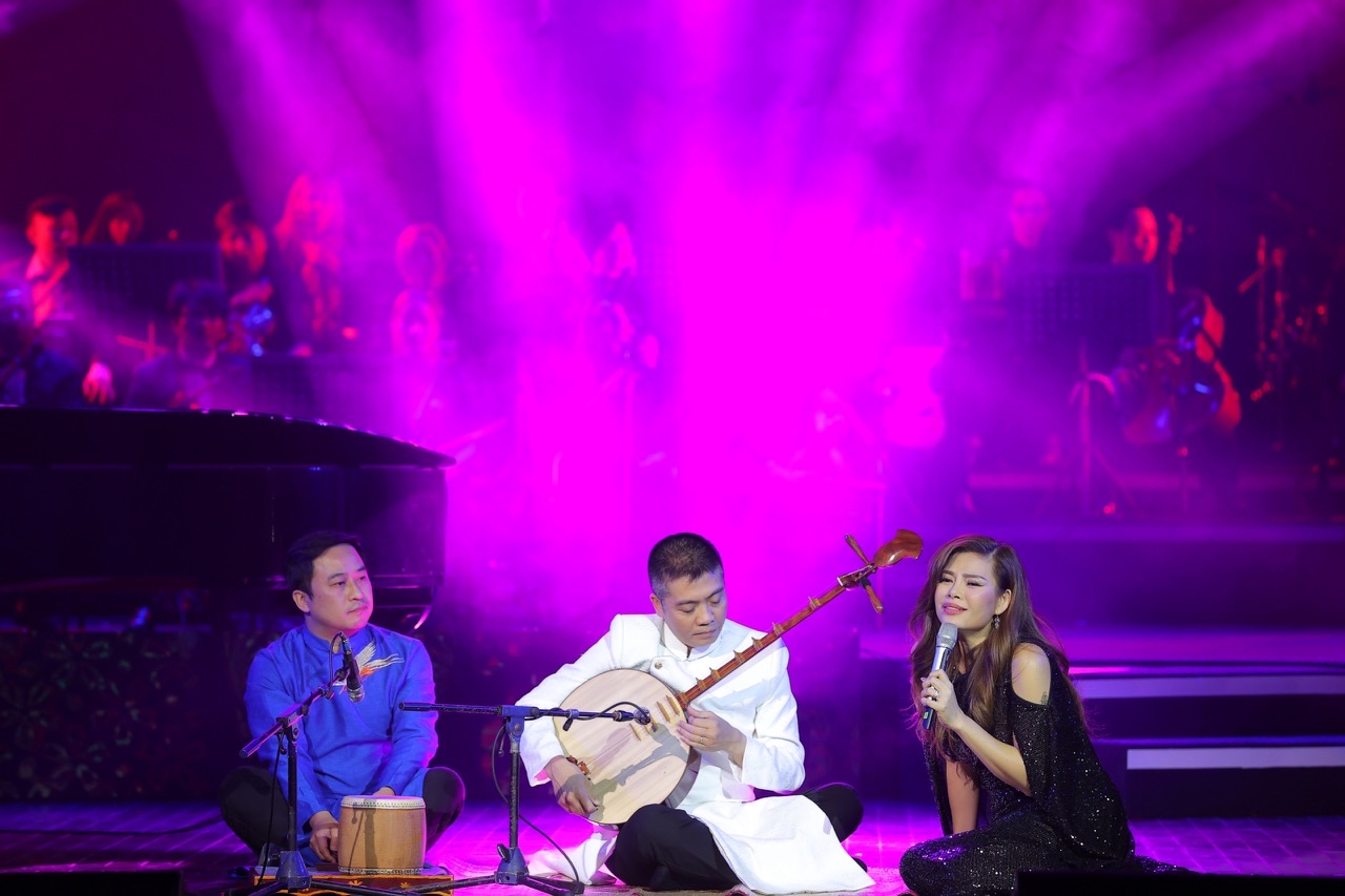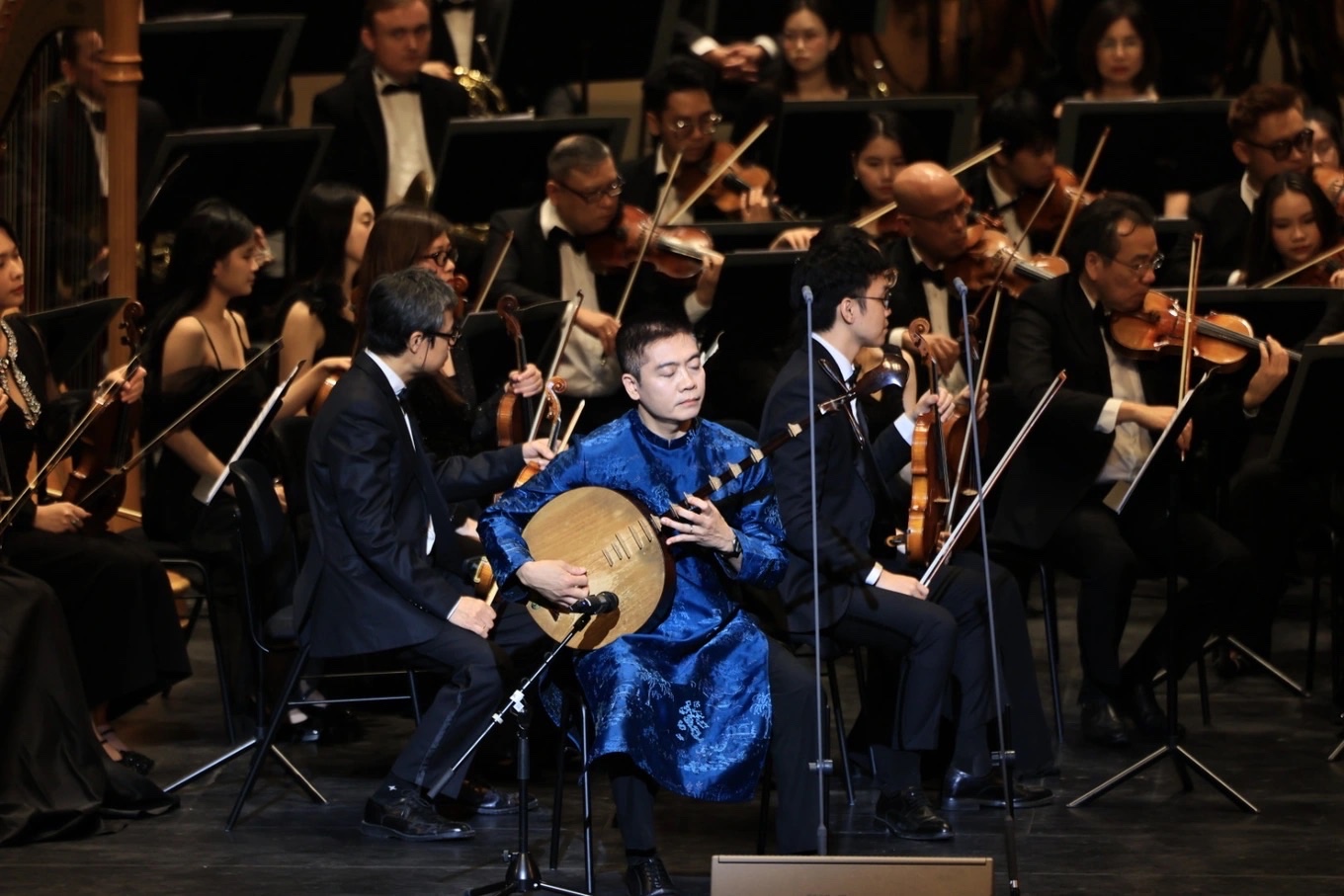 Tiến sĩ, Nghệ sĩ Nhân dân Cồ Huy Hùng chơi đàn nguyệt, hòa quyện thanh âm cùng với Dàn nhạc Giao hưởng Hà Nội trong tiết mục mang tên "Cảm xúc quê hương" tại chương trình nghệ thuật “Giai điệu mùa Xuân”