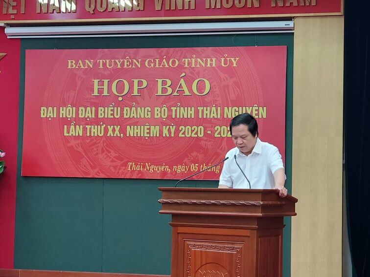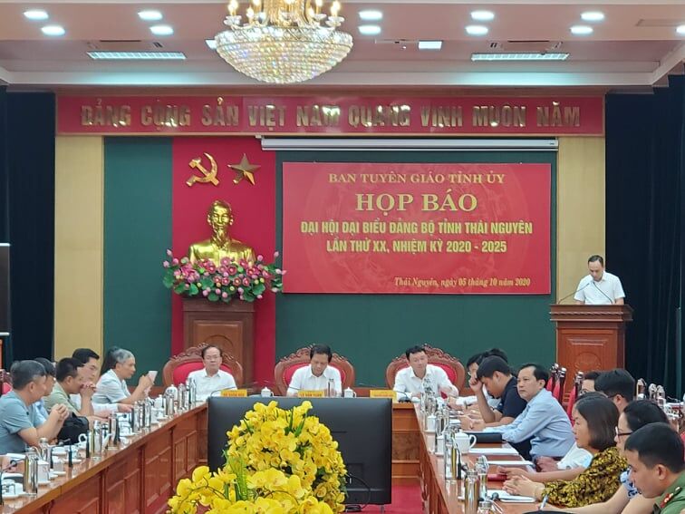 VNHN - Chiều 5/10, Ban Tuyên giáo Tỉnh ủy Thái Nguyên đã tổ chức họp báo về Đại hội Đại biểu Đảng bộ tỉnh Thái Nguyên lần thứ XX, nhiệm kỳ 2020 - 2025. Theo thông cáo báo chí, Đại hội đại biểu Đảng bộ tỉnh lần thứ XX, nhiệm kỳ 2020-2025 dự kiến sẽ được tổ chức trong 03 ngày từ ngày 11 đến ngày 13/10 tại Trung tâm Văn hoá - Nghệ thuật tỉnh Thái Nguyên, với sự tham dự của 350 đại biểu chính thức. Phiên khai mạc diễn ra vào sáng ngày 12/10.