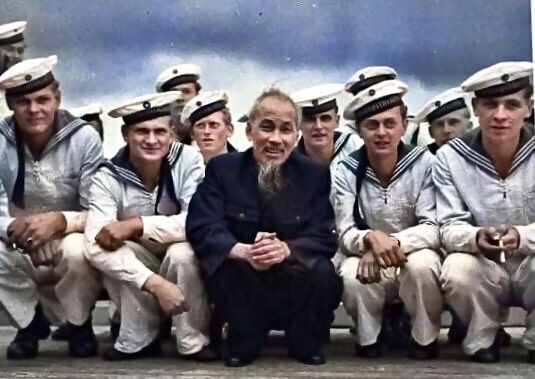 Bác Hồ với hải quân Đông Đức chụp tại vịnh Stralsund vào năm 1957. Nguồn:Tư liệu