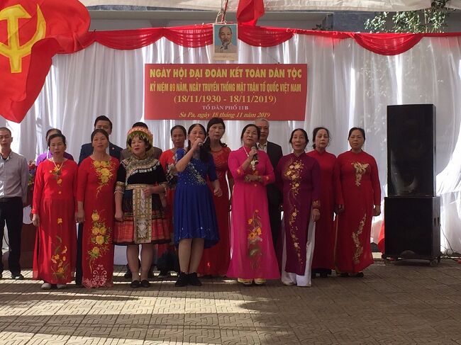 VNHN - Hòa trong không khí thi đua sôi nổi cùng cả nước hướng về kỷ niệm 89 năm ngày thành lập Mặt trận dân tộc thống nhất (18/11/1930 – 18/11/2019), ngày 17/11, bà con nhân dân khu dân cư tổ 11 - Thị trấn Sapa tổ chức Ngày hội Đại đoàn kết toàn dân. Đến dự và chung vui với bà con có đồng chí Phạm Tiến Dũng Bí thư Thị trấn Sapa cùng các đồng chí lãnh đạo thị trấn và đông đảo cán bộ, nhân dân trong toàn tổ dân phố.