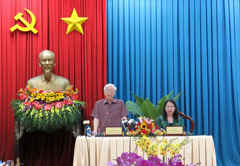 Tổng Bí thư Nguyễn Phú Trọng làm việc tại tỉnh An Giang năm 2018.