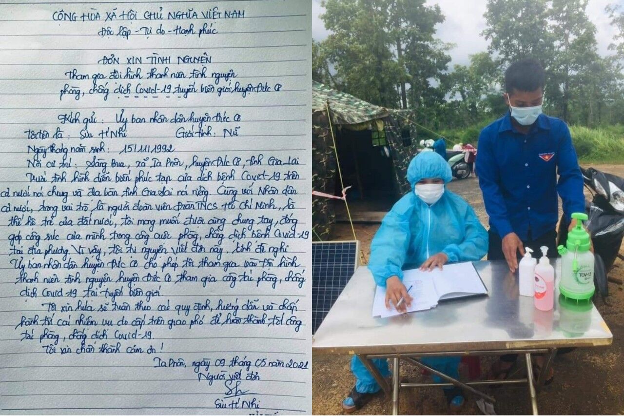 Chị Siu H’Nhi (xã Ia Pnôn, huyện Đức Cơ, tỉnh Gia Lai) ghi rõ trong đơn đăng ký tham gia tình nguyện: Trước tình hình diễn biến phức tạp của dịch bệnh Covid- 19 trên cả nước nói chung và địa bàn Gia đại nói riêng. Cùng với Nhân dân cả nước, trong vai trò là người đoàn viên Đoàn TNCS Hồ Chí Minh, là thế hệ trẻ của đất nước, tôi mong muốn được cùng chung tay, đóng góp công sức của mình trong công cuộc phòng, chống dịch Covid- 19 tại địa phương.