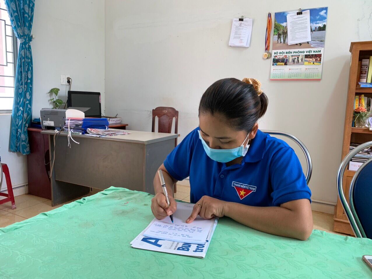 Chị Siu H’Nhi (xã Ia Pnôn, huyện Đức Cơ, tỉnh Gia Lai) viết đơn tình nguyện tham gia phòng chống dịch Covid-19 tại tuyến biên giới.