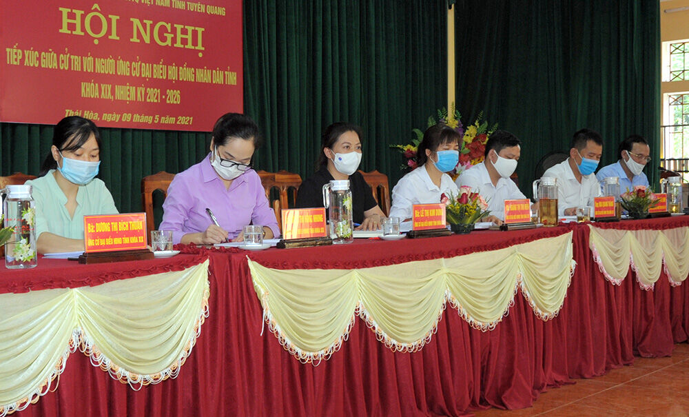 Tiếp tục chương trình tiếp xúc cử tri vận động bầu cử đại biểu HĐND khóa XIX, các ứng cử viên đại biểu HĐND tỉnh khóa XIX, nhiệm kỳ 2021-2026 tại các đơn vị bầu cử số 3, 5, 11 đã tiếp xúc cử tri vận động bầu cử tại xã Phú Bình (Chiêm Hóa), xã Thái Hòa (Hàm Yên), An Khang (TP Tuyên Quang).