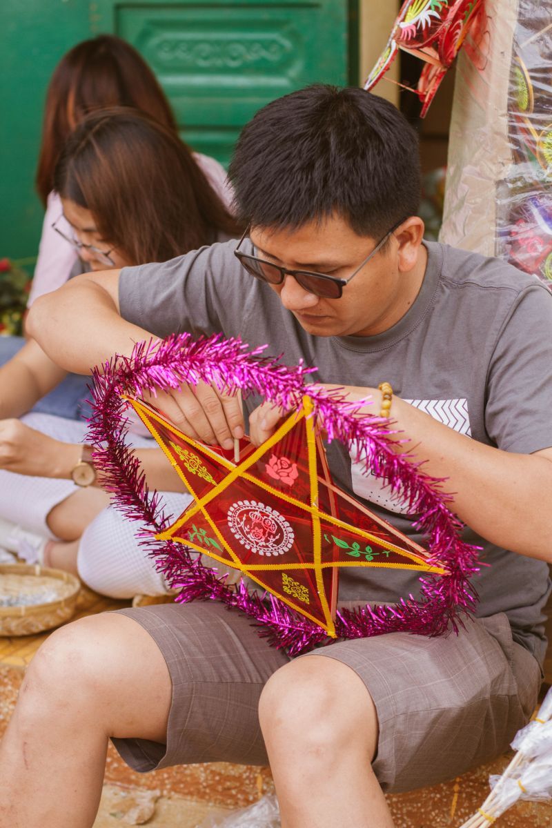 Anh An Tran (Ban tổ chức) tự tay làm đèn lồng để tặng cho các em nhỏ