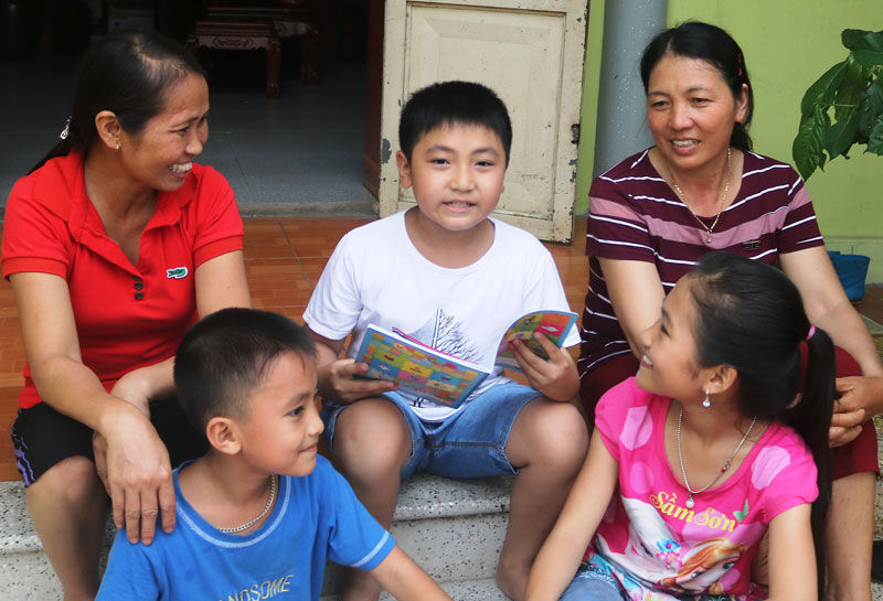 Gia đình và các bạn nhỏ hàng xóm nghe làn điệu Quan họ cổ do Vương Văn Nam thể hiện.