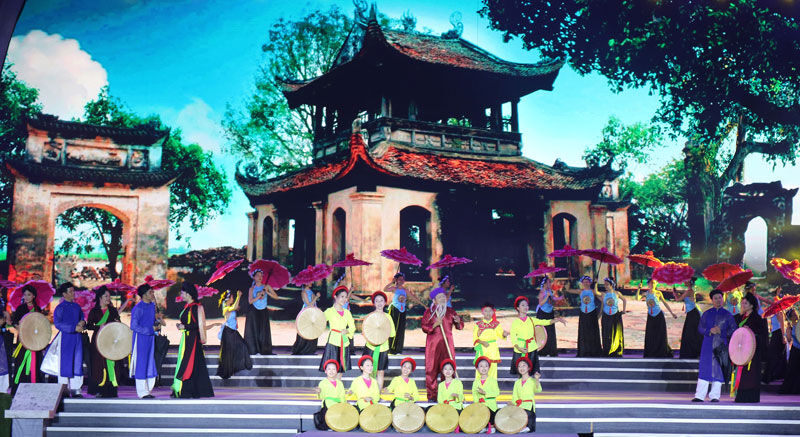 Nguyễn Thực Thanh (đứng cạnh cụ ông áo đỏ) là liền anh nhí duy nhất được tham gia biểu diễn trên sân khấu chương trình “Rạng rỡ miền Quan họ” tại Festival Về miền Quan họ.